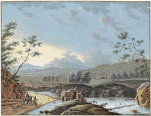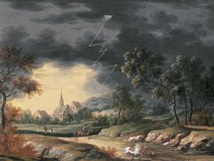Gewitterlandschaft mit Reitern.