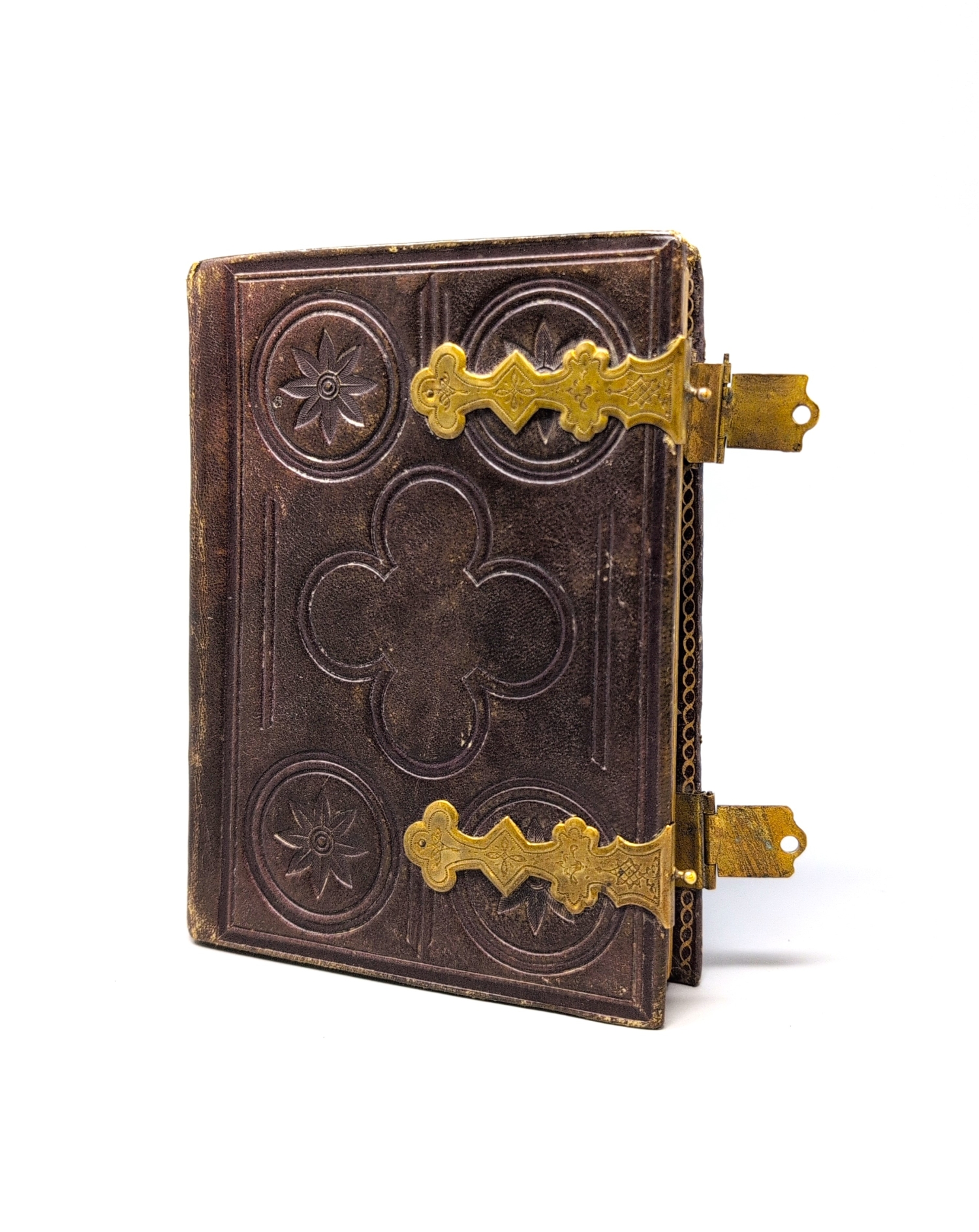 Italienisches Porträtalbum des Risorgimento. Fotoalbum mit 20 Porträtfotografien. Albumin-Abzüge im Carte-de-Visite-Format auf 10 Blatt festem Karton montiert.14,3 x 11 cm. Blindgeprägtes Leder d. Z. (an den Kapitalen gering berieben) mit 2 Metallschließen sowie Goldschnitt und Innenkantenvergoldung. Wohl Florenz 1866.