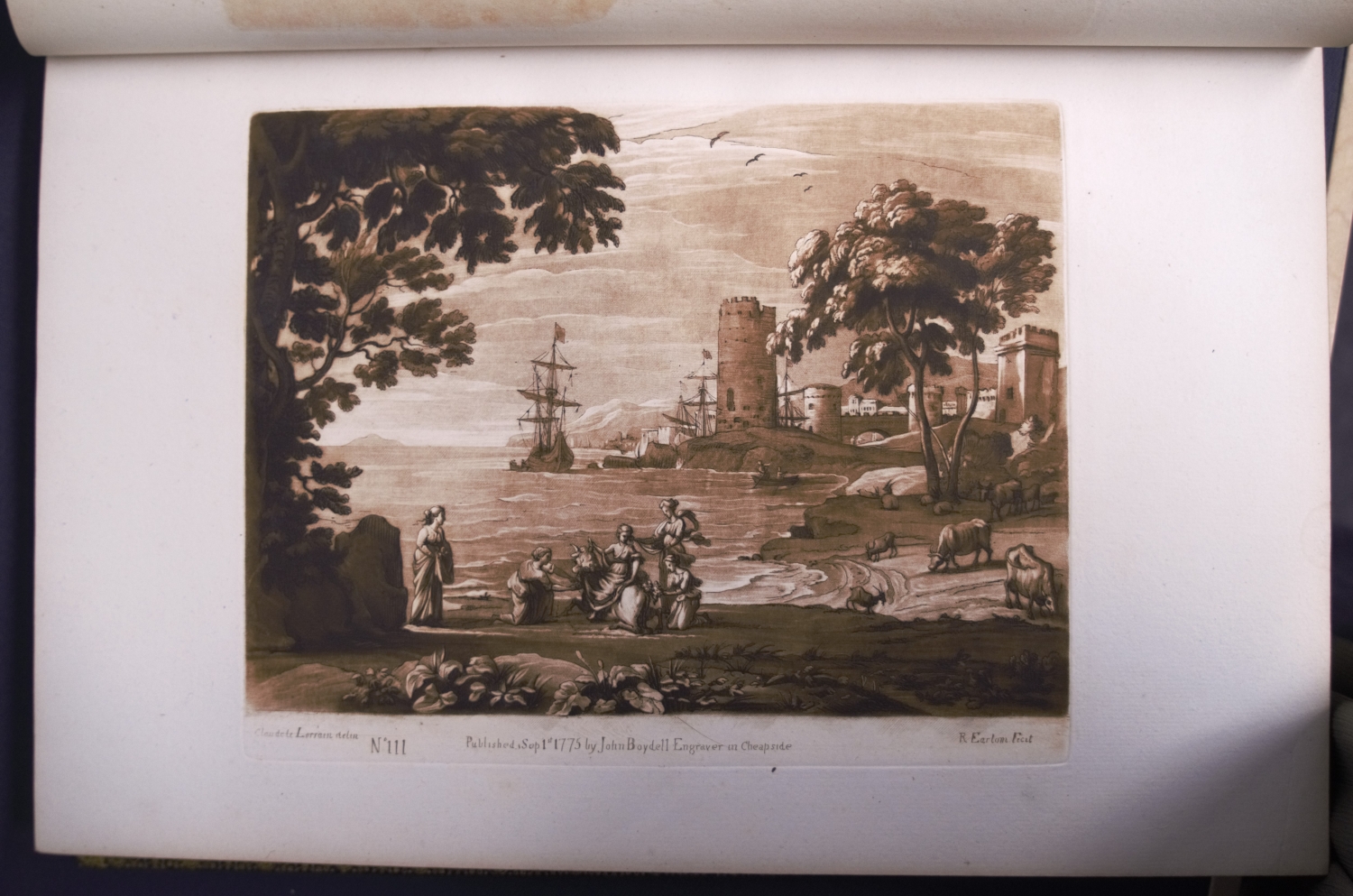 Abbey, Life II, 200. Lewine 325. Cohen-de Ricci 242. Wessely, Earlom Nr 149ff. Thieme-Becker X, 283 und XIII, 369. – Das Porträt Lorrains in Band 1 mit 1777 datiert. "Capital work, a landmark in the history of reproduction of master drawings, is included in this catalogue as an important forerunner of later publications ... it contains pastoral, mythological, and biblical subjects. They are all printed in warm bustre colour to aid the resemblance" (Abbey). "Neu ist bei ihm die ungewöhnliche Feinheit des Mezzotintogrundes und die Anwendung einer aus Kupferätzung und Schabkunst kombinierten Mischtechnik" (Thieme-B. X, 283 zu Earlom). – Leicht gebräuntes, nur hin und wieder in den Rändern etwas braunfleckiges Exemplar in repräsentativem, dekorativem Einband.