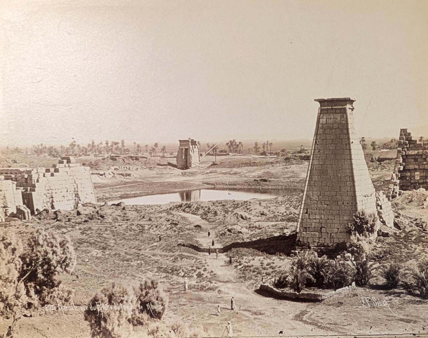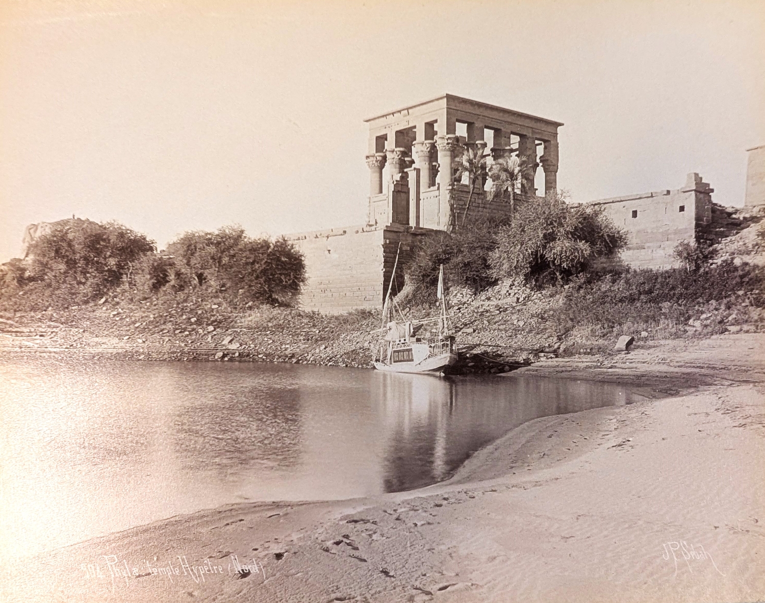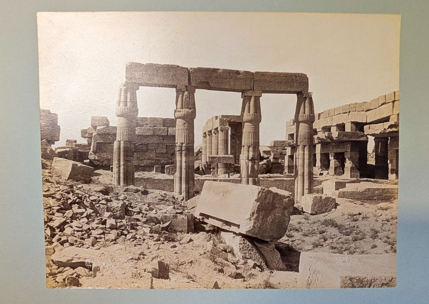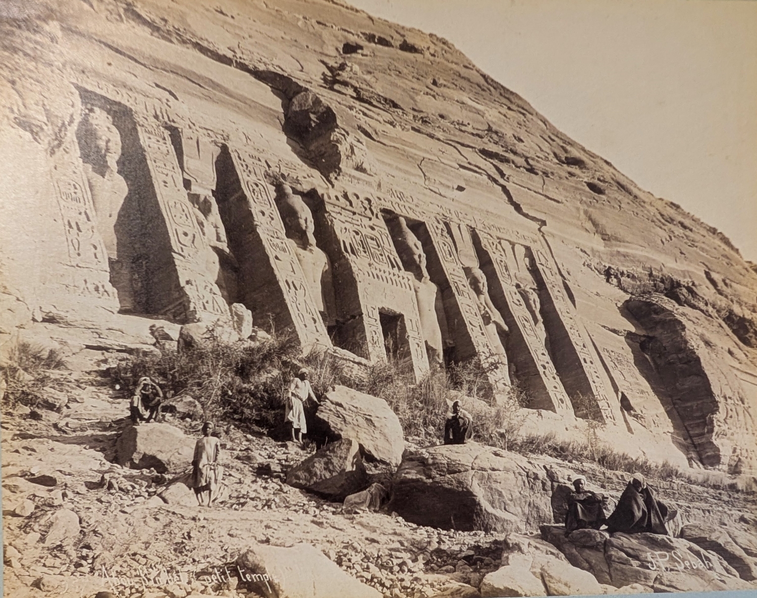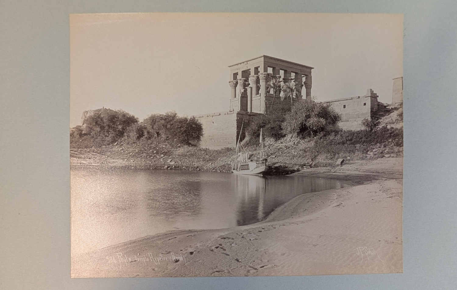 Schweres, sehr repräsentables Souveniralbum mit Ansichten aus Ägypten mit den hinlänglich bekannten Kulturstätten des Alten Ägypten, einleitend zwei Panoramansichten von Kairo, mit spärlicher Staffage (da mal ein Mensch, dort mal ein Kamel). Alle Abzüge auf schweren, grauen Untersatzkarton gewalzt und mit Angabe der seinerzeit für ihre Ägyptenfotografien namhaften Jean Pascal Sebah (1872-1947) bzw. Paul Dittrich (1868-1939) sowie Bezeichnung (auf Französisch) in der Platte, daher spiegelverkehrt. – Sehr gut erhalten.