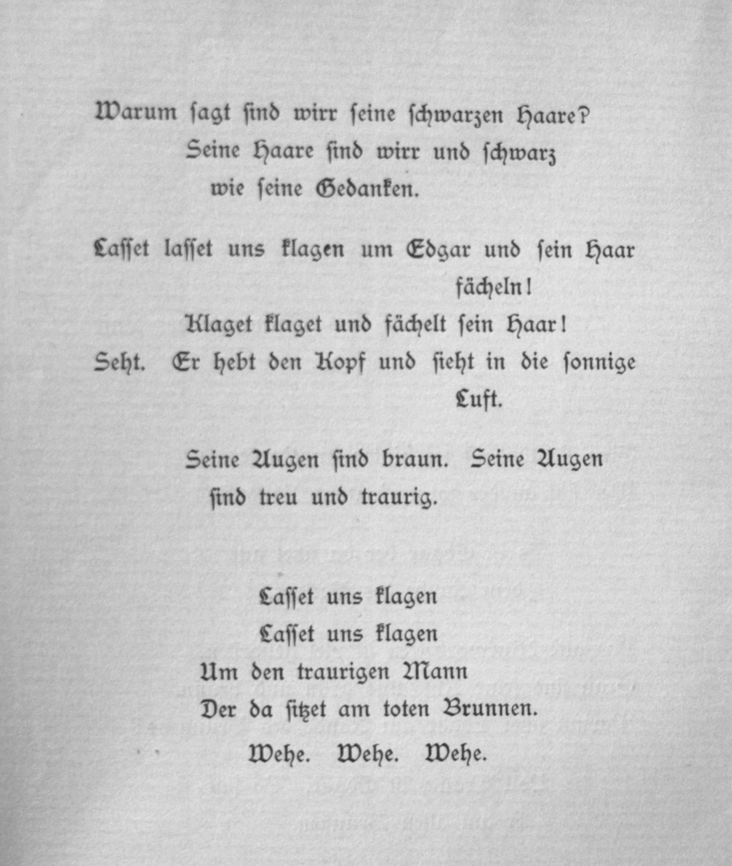 Cassirer, F. - Leopold, Fritz (Pseud.: d. i. Fritz Cassirer). Edgar. Gedichte. 14 S. OPergamin-Umschlag (Rücken lädiert, vom Block gelöst, stärker fleckig, mit Einrissen, Bezug brüchig, Rückdeckel fehlt). O. O., Dr. und J. (1894).