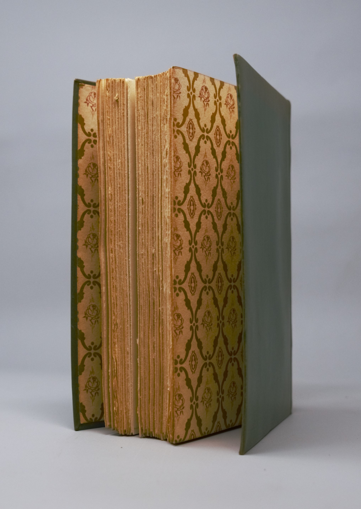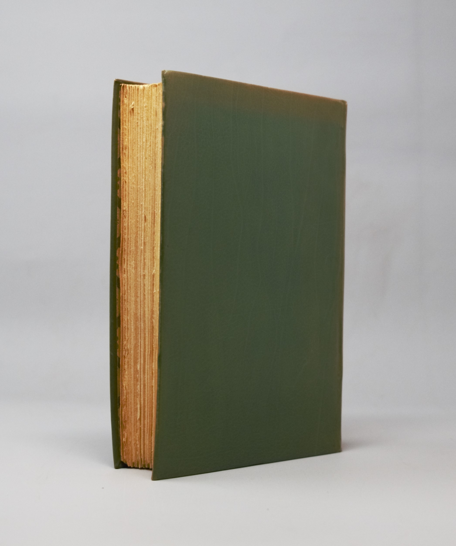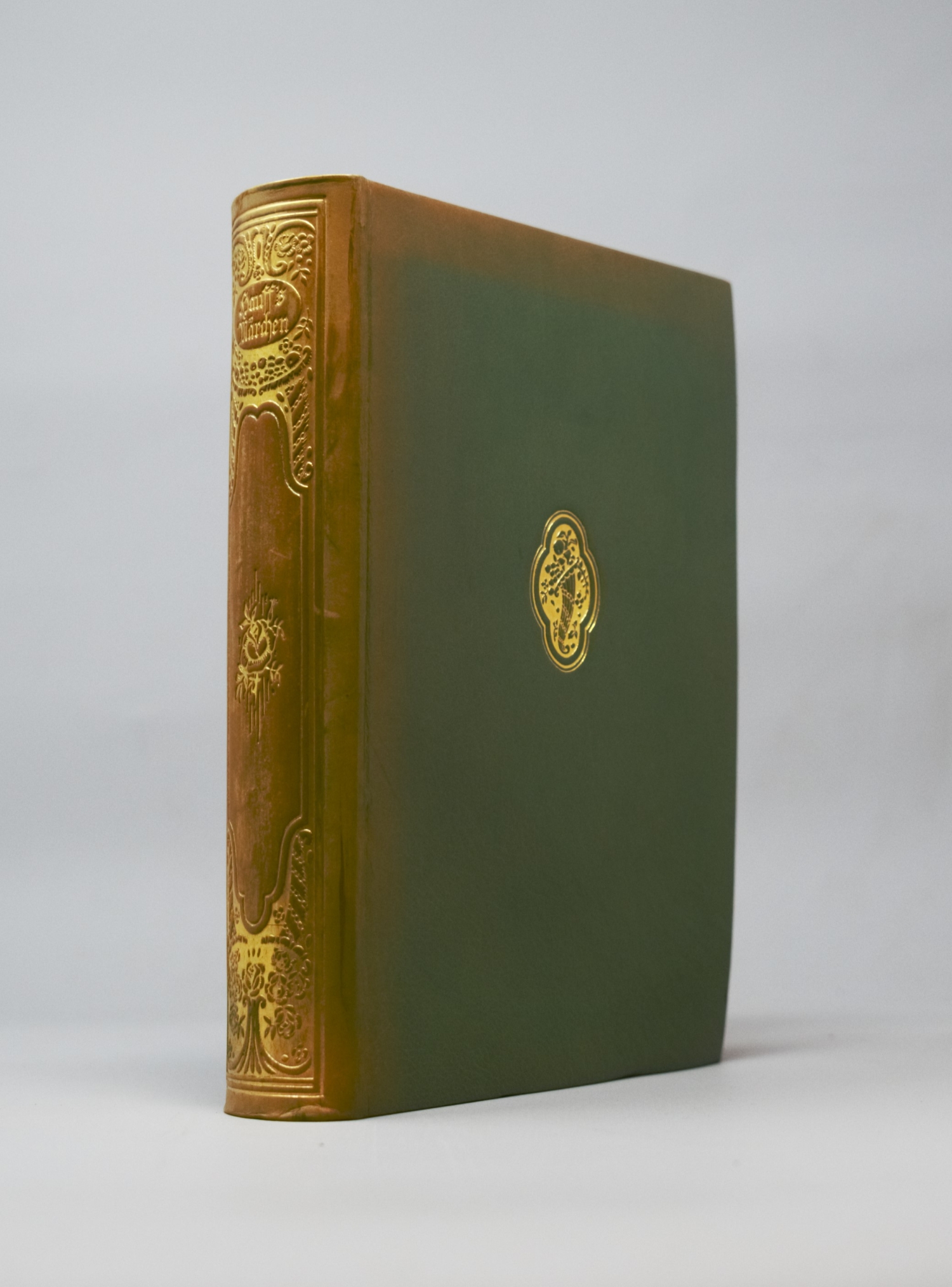 Insel-Verlag. - Hauff, Wilhelm. Märchen. Vollständige Ausgabe. 2 Bl., 513 S., 1 Bl. Mit Doppeltitel und Initialen von Carl Weidemeyer. 19,5 x 12,5 cm. Hellgrüner flexibler OKalbslederband (Rücken ausgeblichen, Deckel etwas lichtrandig) mit ornamentaler RVergoldung und Deckelvignette sowie KGoldschnitt. Leipzig, Insel, 1911.