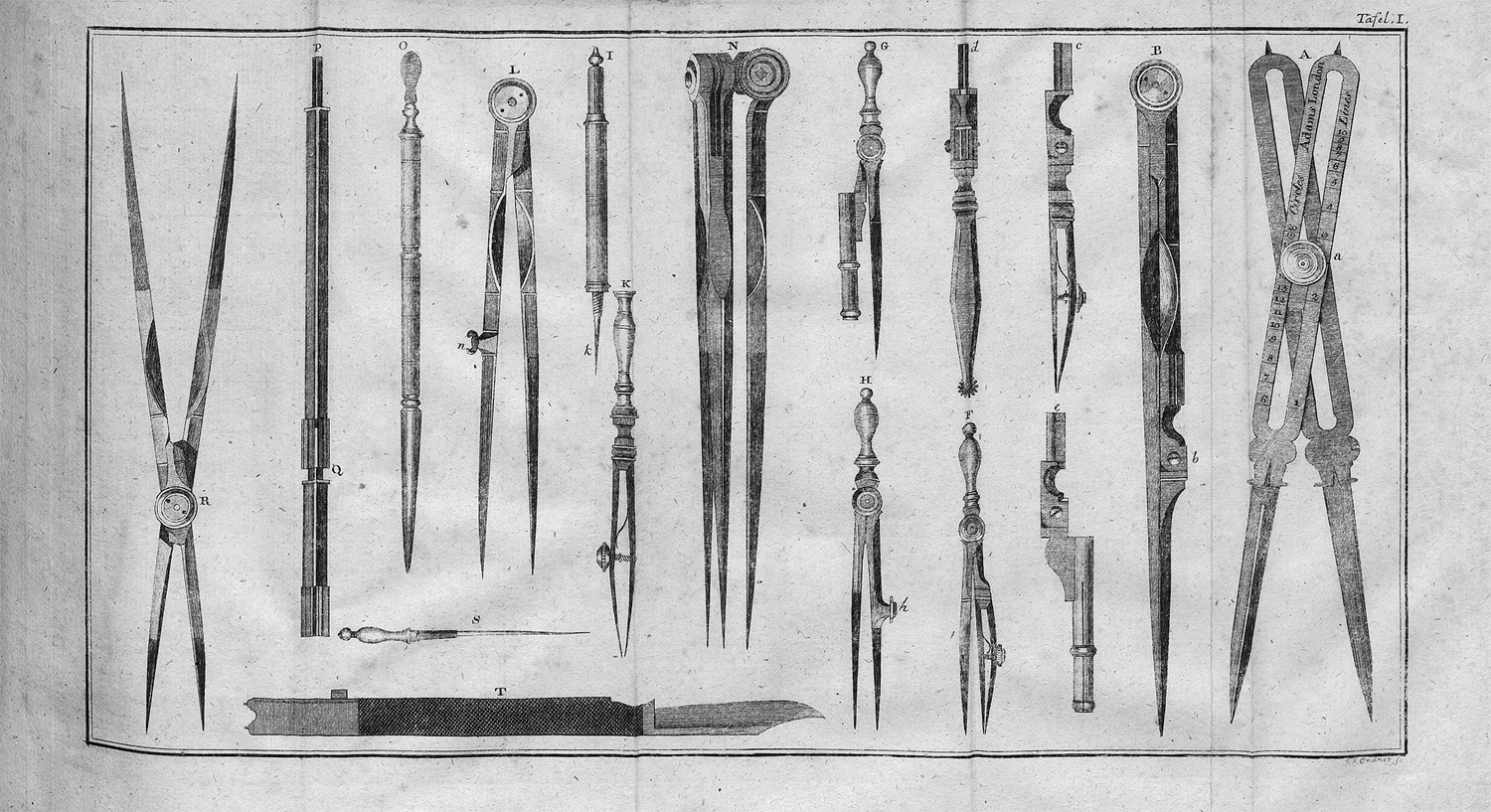 VD18 14801043. DNB 1, 97. Engelmann (Suppl.) 4. Vgl. Poggendorff I, 10 (engl. Ausg. von 1791). Sotheran 5647. – Erste deutsche Ausgabe (das engl. Original "Geometrical and Graphical Essays..." erschien 1791). Vollständiger Titel des Anhangs: "Anhang zu Herrn Adams's Geometrischen und Graphischen Versuchen - oder Tafel für die Grösse der Nordlichen, Südlichen, Oestlichen und Westlichen Richtung für einzele Grade und funfzehnte Minute des Quadranten bei einer Entfernung von 1 bis 100". - George Adams Jr. (1750-1795) war der Sohn des Instrumentenbauers und Optikers George Adams Sr. (1720?-1773). Beide arbeiteten u. a. für König George III. und die British East India Company. "He (Adams Jr.) also wrote largely on the use of mathematical instruments, and his books on that subject were highly valued" (DNB). Der Textteil enthält u. a. ein ausführliches Verzeichnis der mathematischen und physikalischen Instrumente, die von Adams Jr. in No. 60, Fleet Street, London angefertigt und verkauft wurden (sowohl in englisch als auch in deutscher Übersetzung). Der Autor gilt u. a. als Erfinder des "Lampenmikroskops", bei dem zunächst eine Öllampe als Lichtquelle benutzt wurde (Gerlach: Geschichte der Mikroskopie, S. 113.). In der Verkaufsliste wird es als "Adam's Luzernal-Mikroskop" angeboten. Die Tafel 37 (Blatt A und B) zeigt Teile zur Erklärung der Adams'schen Mikroskope, obwohl dies nicht unmittelbar zum Thema des Werkes gehört. – Frontispiz und Titel leicht wasser- bzw. braunfleckig. Innen durchweg sauber, nur vereinzelt gering fleckig. Dekoratives Exemplar.
