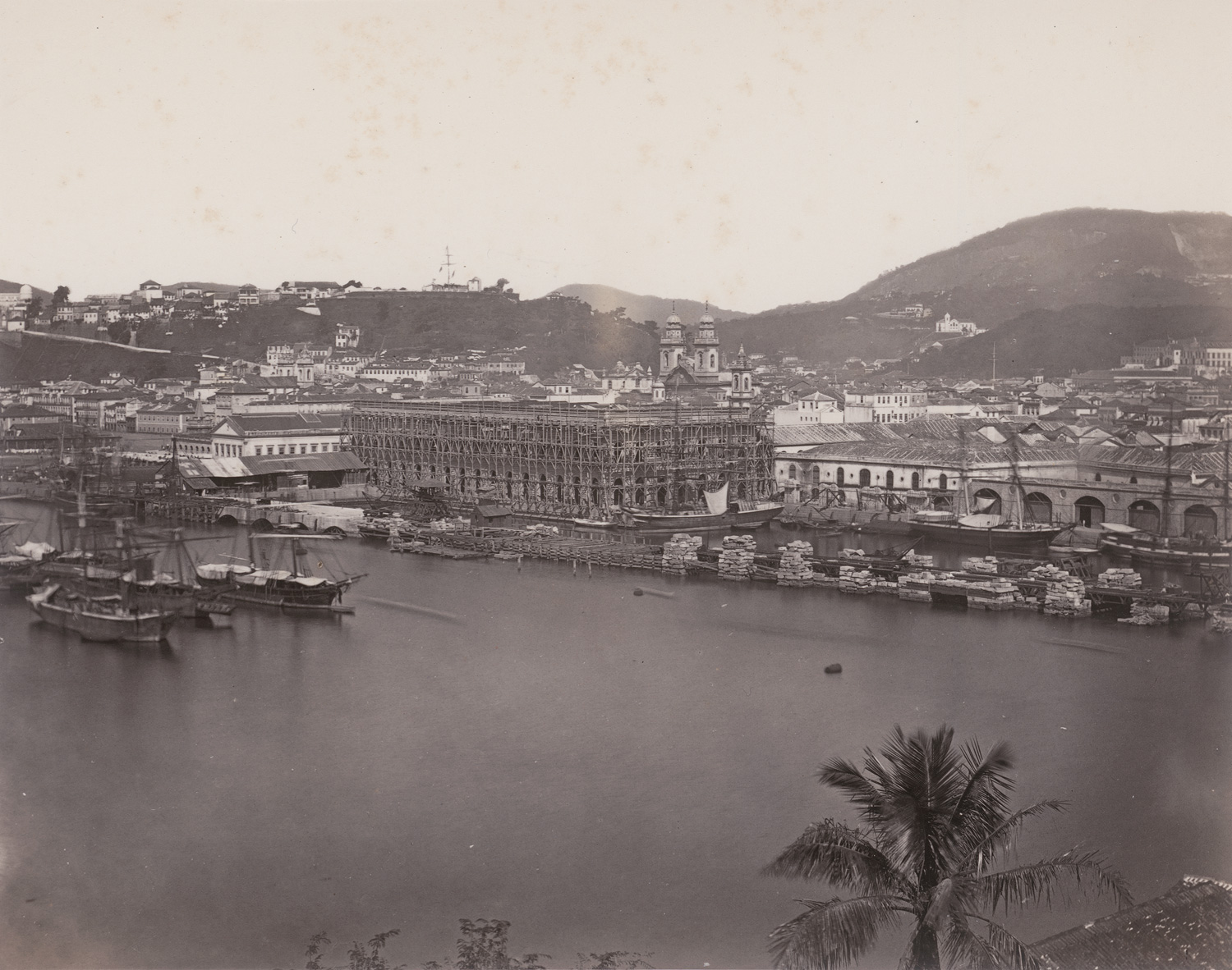 This cohesive group of photographs offers a rare visual record of Rio de Janeiro in the mid-19th century, attributed to the French-born photographer Théophile Auguste Stahl. The views range from prominent landmarks, such as the Imperial Military Academy at Praia Vermelha, the Arsenal da Marinha, and Glória Hill, to sweeping panoramas of the city’s hills and coastline. Several images highlight the urban development of central neighborhoods like Santa Teresa, while others emphasize the dramatic natural setting of Guanabara Bay with Sugarloaf Mountain and Corcovado in the distance. Stahl’s precise compositions convey both the architectural ambition and evolving topography of imperial Rio during a period of dynamic transformation. – Some very light scuff marks, minimal foxing as well as a small tear on one print and light fading along the edges of some prints, otherwise all strong tonal prints in near excellent condition.