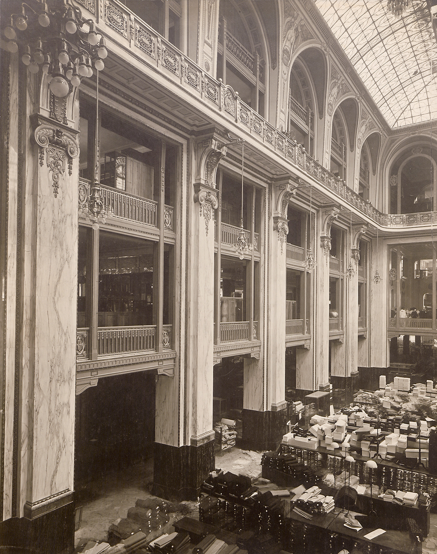 Photographers: Emil Leitner (1887-1953) and A. Dittmer. Selected images of marble and stone works incorporated in commercial buildings in Berlin and Hamburg. 1900-1920s. 12 vintage, large-format platinum prints. Various sizes between circa 39 x 29 cm and 20,5 x 26,5 cm. Some with photographer's blind stamp in lower corners.