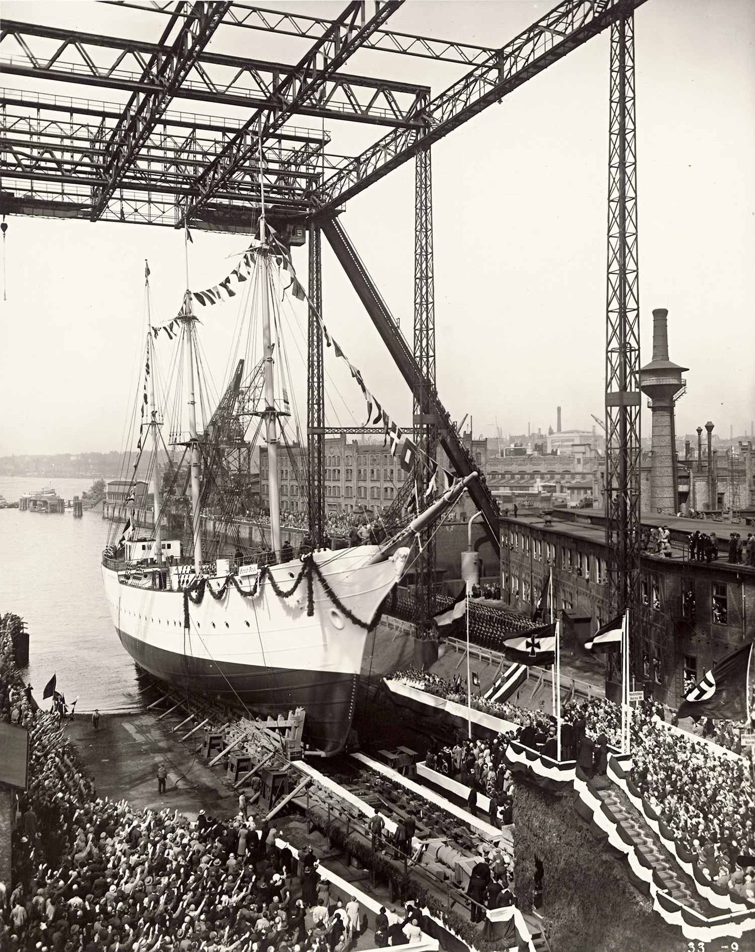 Launching of Gorch Fock (I), built by Blohm & Voss, Hamburg