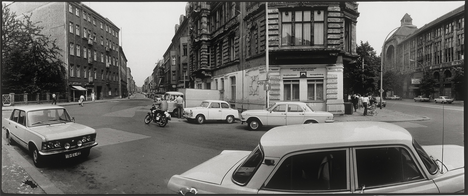 Oranienburger Straße, Berlin; Tucholskystraße/Ecke Auguststraße, Berlin; Oranienburger Tor, Berlin. 1979. 3 panoramic gelatin silver prints, printed 2005-2007. Each circa 22 x 52,5 cm and 24 x 57 cm (32 x 60 cm). Each signed, titled, and dated by the photographer in pencil as well as with photographer's stamp on the verso.