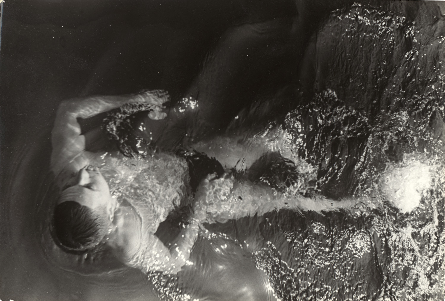 Swimmer. 1930s. Vintage ferrotyped gelatin silver print. 24 x 16,2 cm. Photographer's/copyright stamp and numbers in ink and red crayon on the verso.