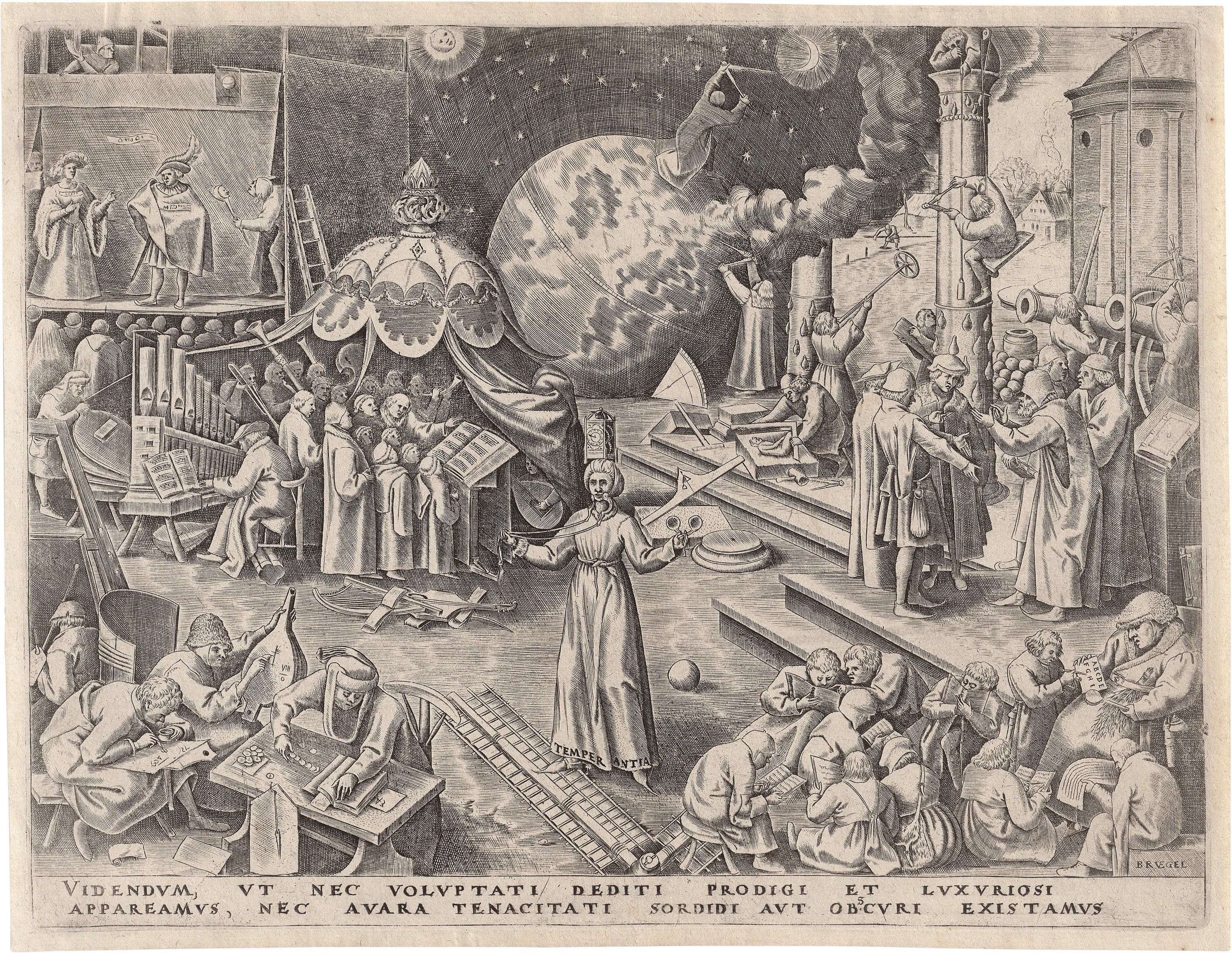 nach. Temperantia. Kupferstich von Philips Galle. 22,3 x 29,1 cm. (1559). Hollstein (Bruegel) 138, Bastelaer 138, Riggs 32, Orenstein (New Hollstein) 19 I (von II), Sellink (New Hollstein) 315 I (von II), Bassens/Grieken 13 g. Wz. Gotisches P (?).
