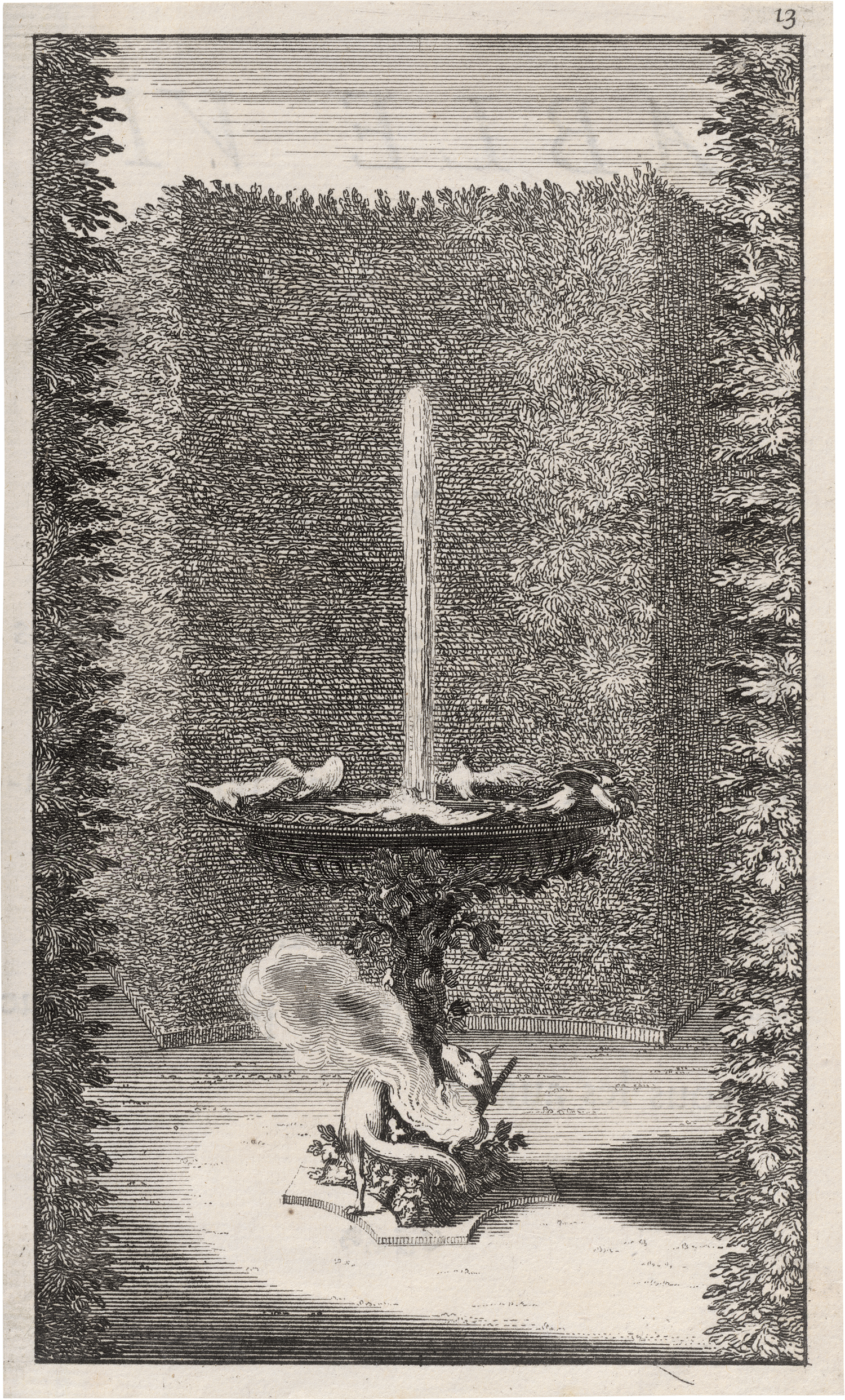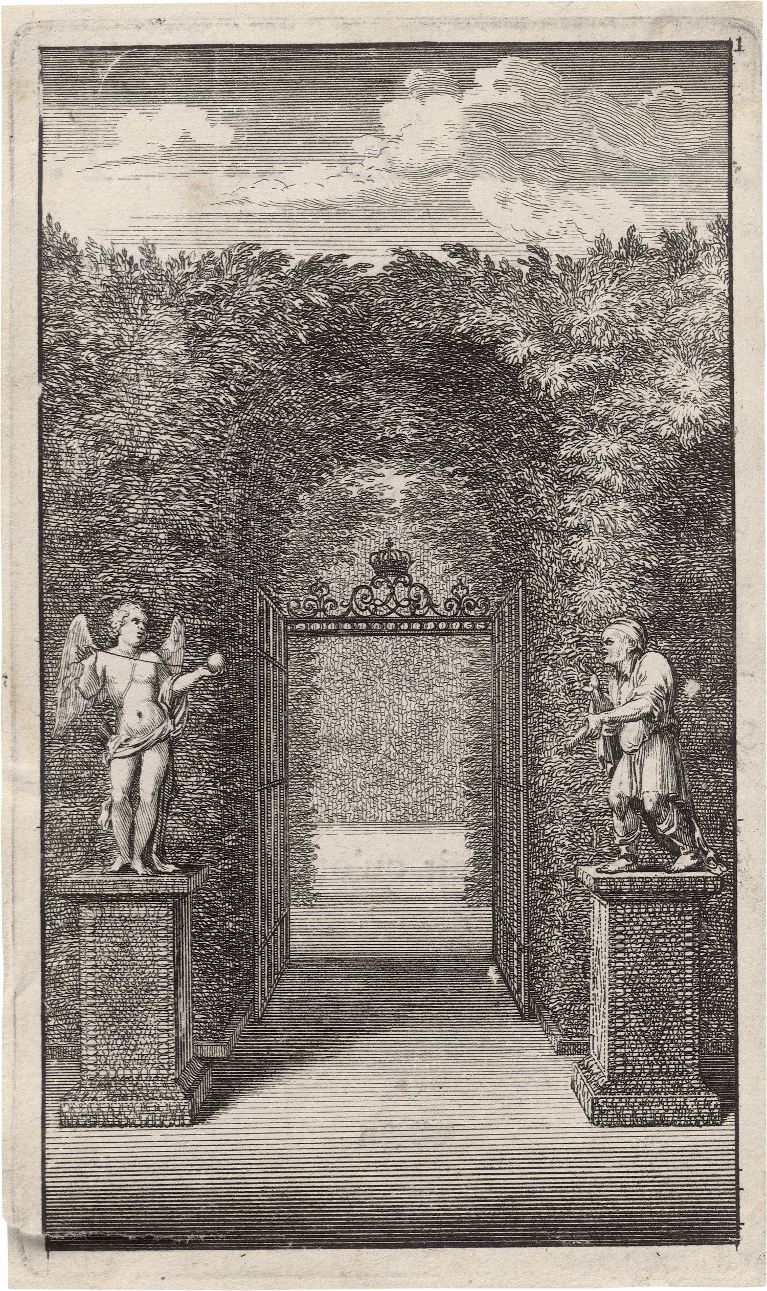 Plan du Labirinthe de Versailles. 40 Radierungen zzgl. Titel. Je ca. 15 x 9,2 cm. (1677). Berliner Ornamentstichkat. 3605.