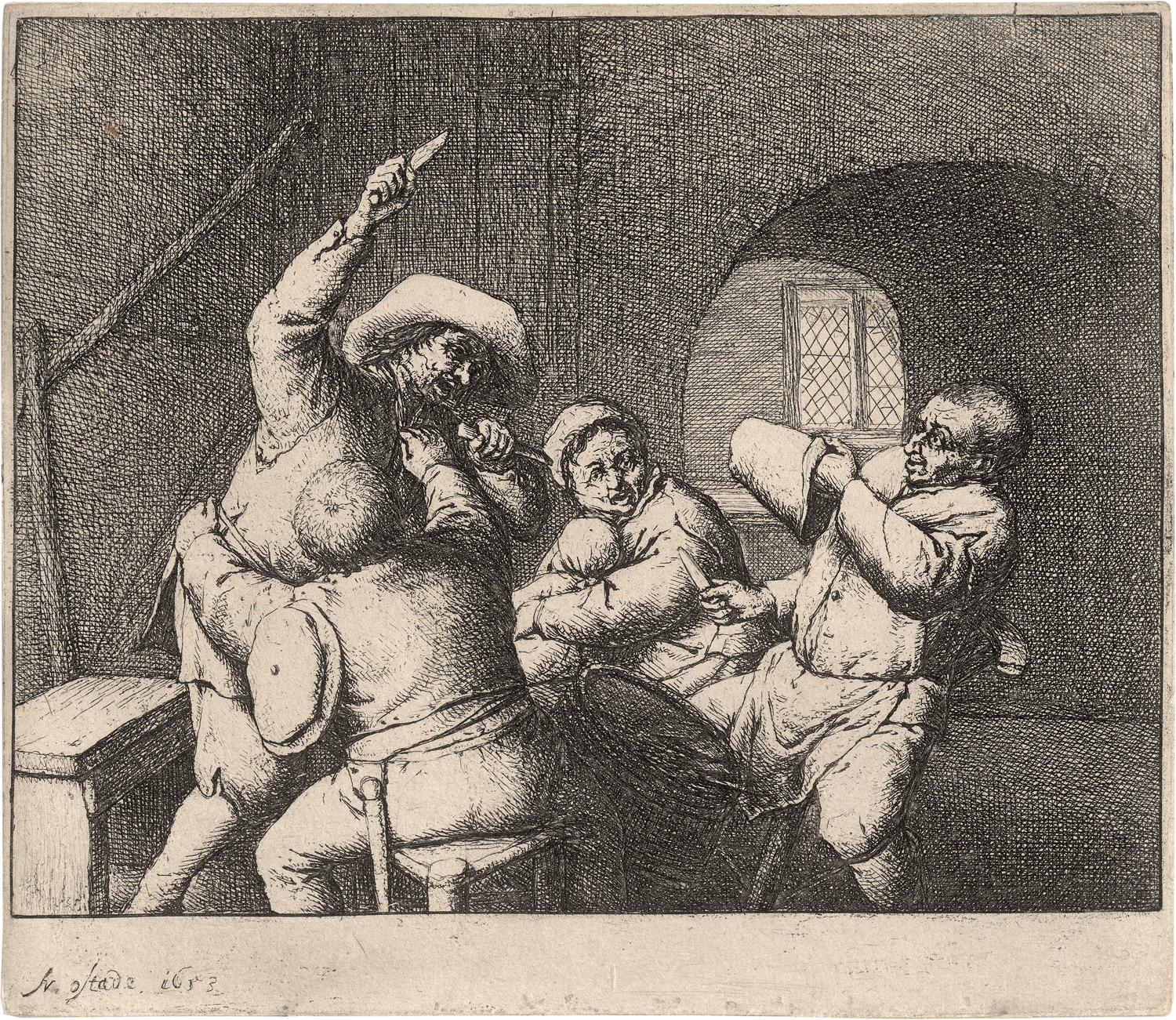Der Messerkampf. Radierung. 12,5 x 14,5 cm. 1653. B. 18, Dutuit III (von V), Davidsohn, Godefroy, Hollstein 18 V (von VIII), Giordani/Rutgers (New Hollstein) 33 wohl noch VI (von VIII).