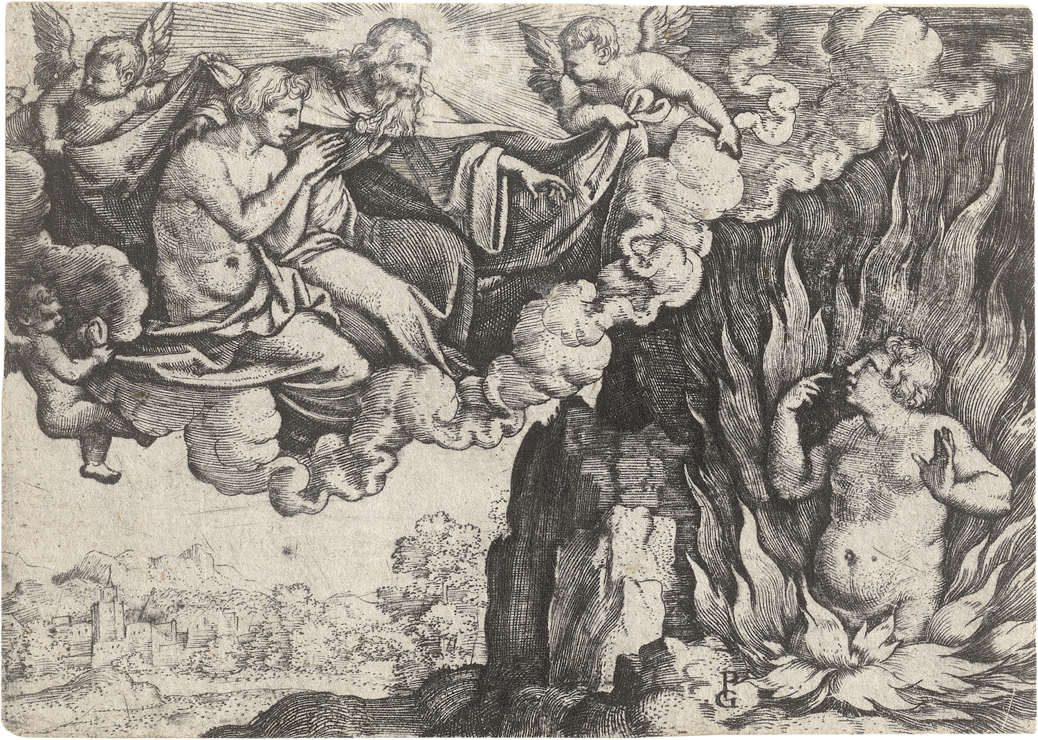 Die Parabel des reichen Mannes und armen Lazarus. 3 Kupferstiche. Je ca. 6 x 8,5 cm. B. 65-67, Landau 68-70, Hollstein 37, 38 II, 39.
