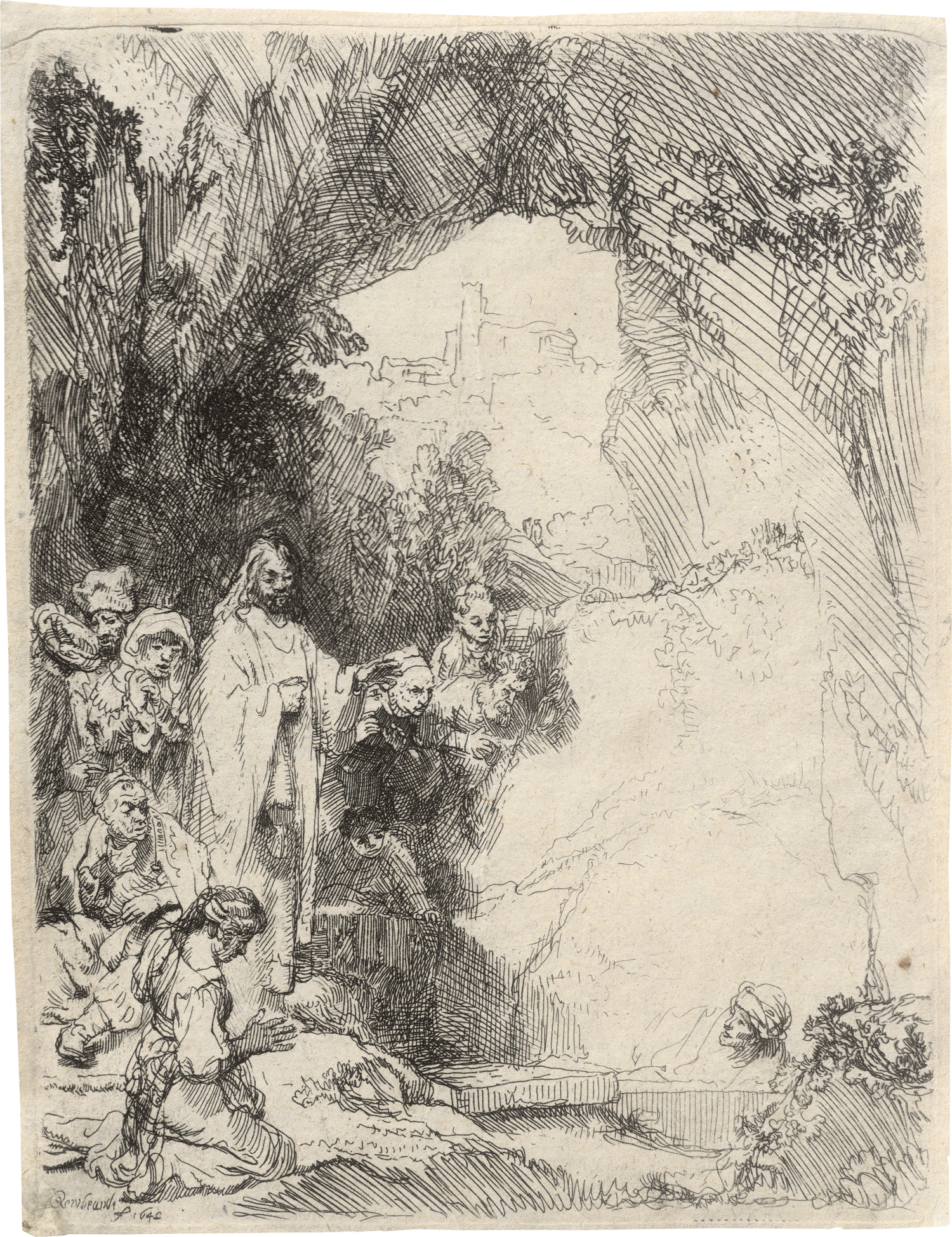 Die kleine Auferweckung des Lazarus. Radierung. 15,1 x 11,2 cm. 1642. B. 72, White/Boon (Hollstein) 72 II, Nowell-Usticke 72 II (von III), Hinterding/Rutgers (New Hollstein) 206 II.