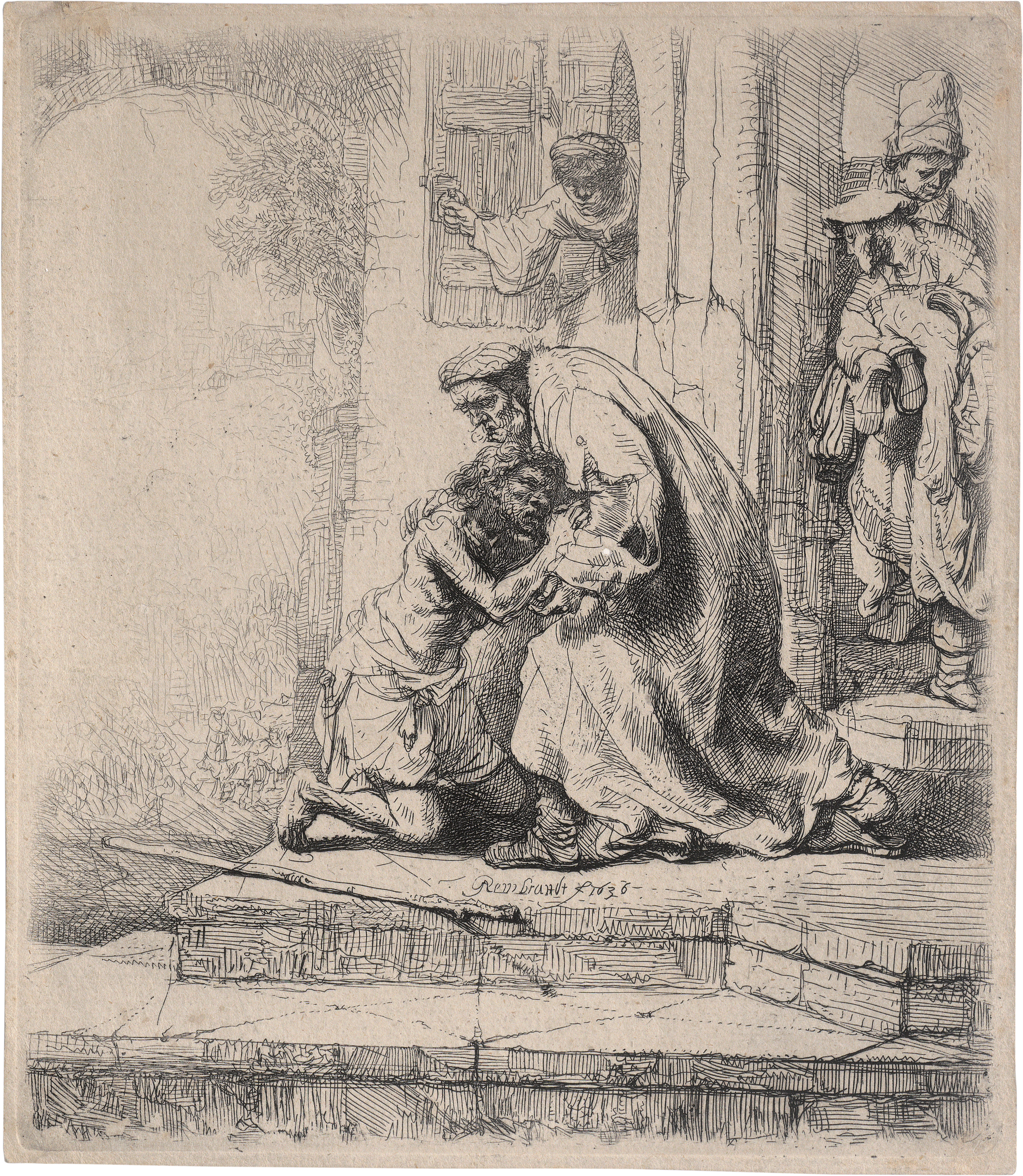 Die Rückkehr des verlorenen Sohnes. Radierung. 15,6 x 13,5 cm. 1636. B. 91, White/Boon (Hollstein) 91, Nowell-Usticke 91 IV, Hinterding/Rutgers 159 I-II (von III).