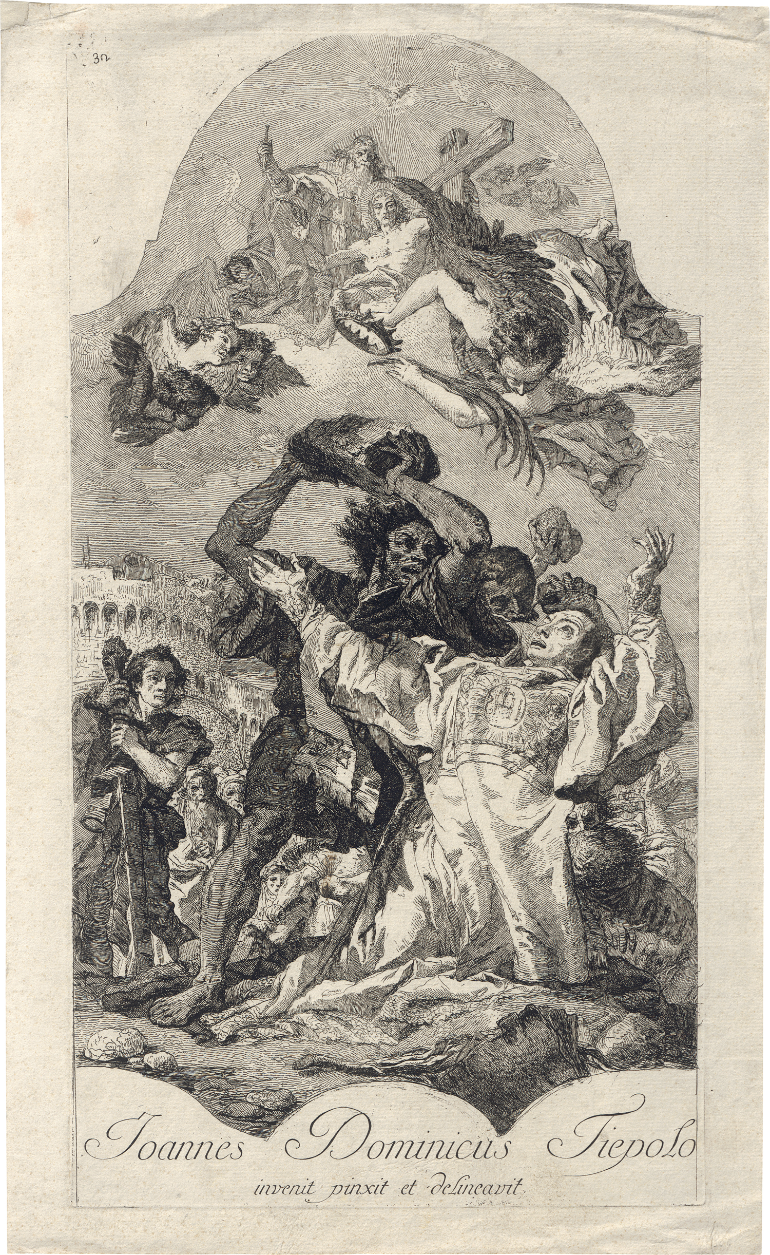Die Steinigung des hl. Stephanus. Radierung. 49 x 26,9 cm. De Vesme 60 II, Rizzi (1970) 117 II, Rizzi (1971) 121 II, Succi 72 II.