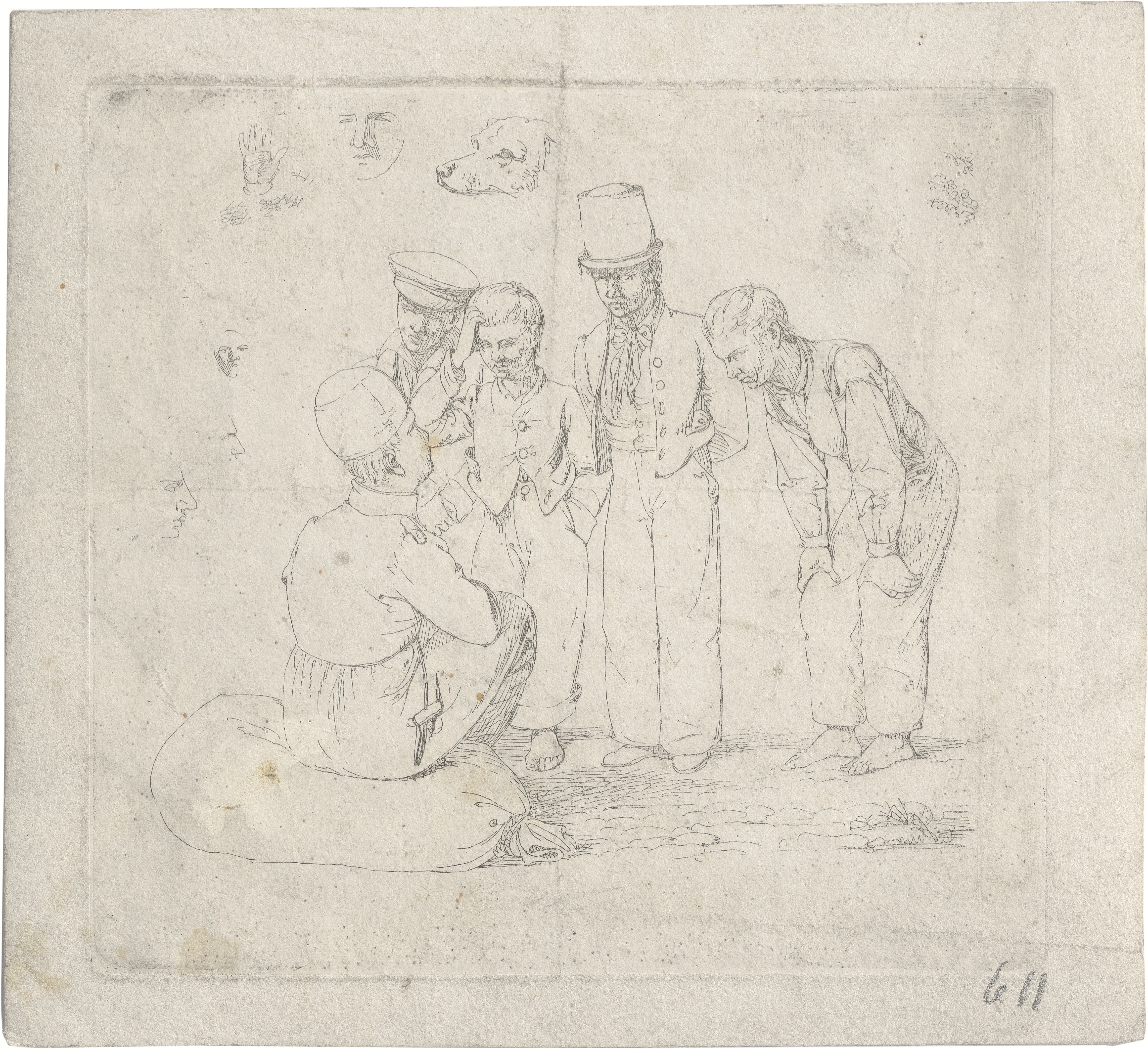 Ein russischer Matrose auf dem Zolllagerhaus. Radierung. 11,3 x 12,2 cm. (1827). Hannover E2.