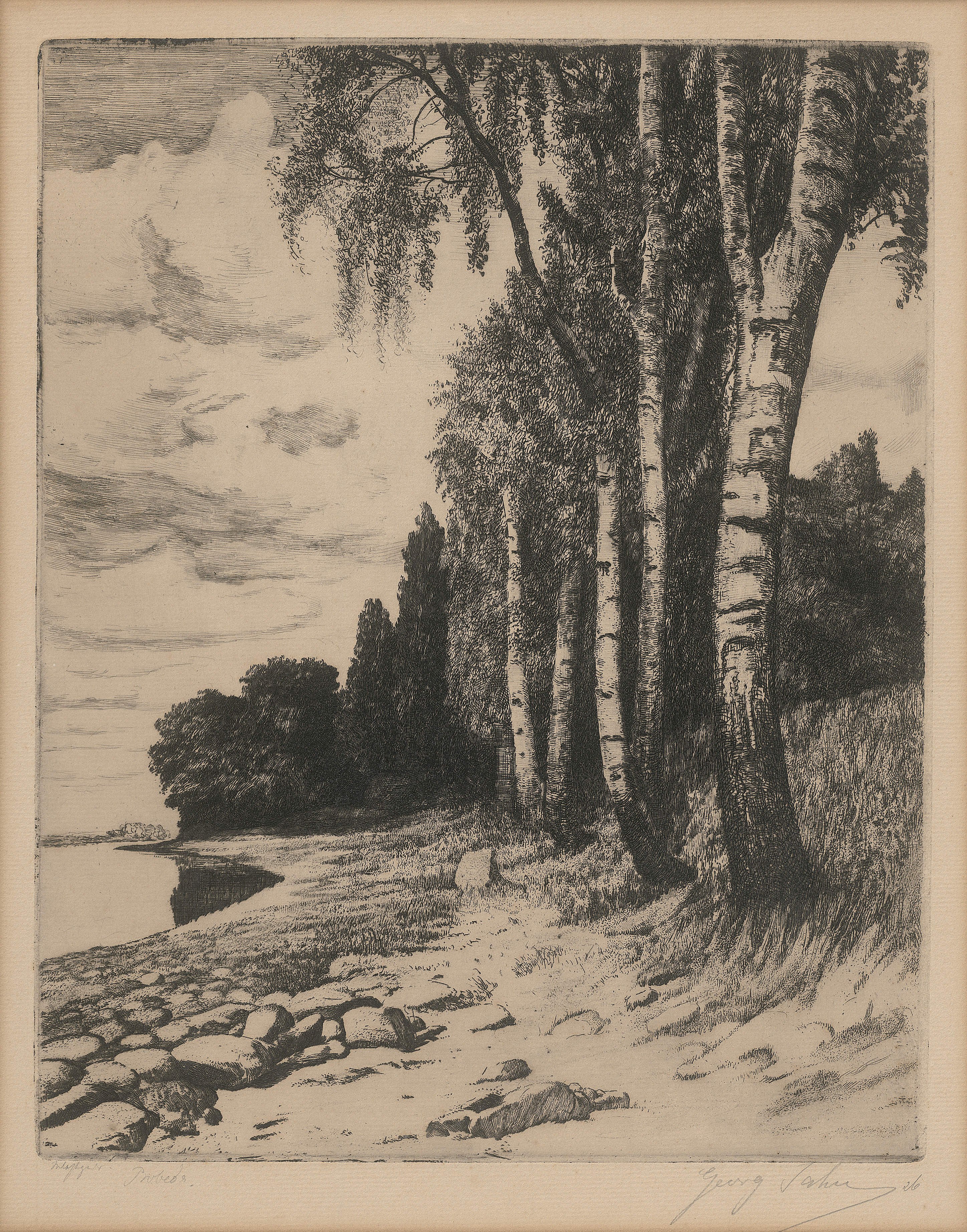 Birken am Seeufer. Radierung. 30,9 x 24,5 cm. Signiert, datiert und bezeichnet "Probedruck". 1926.