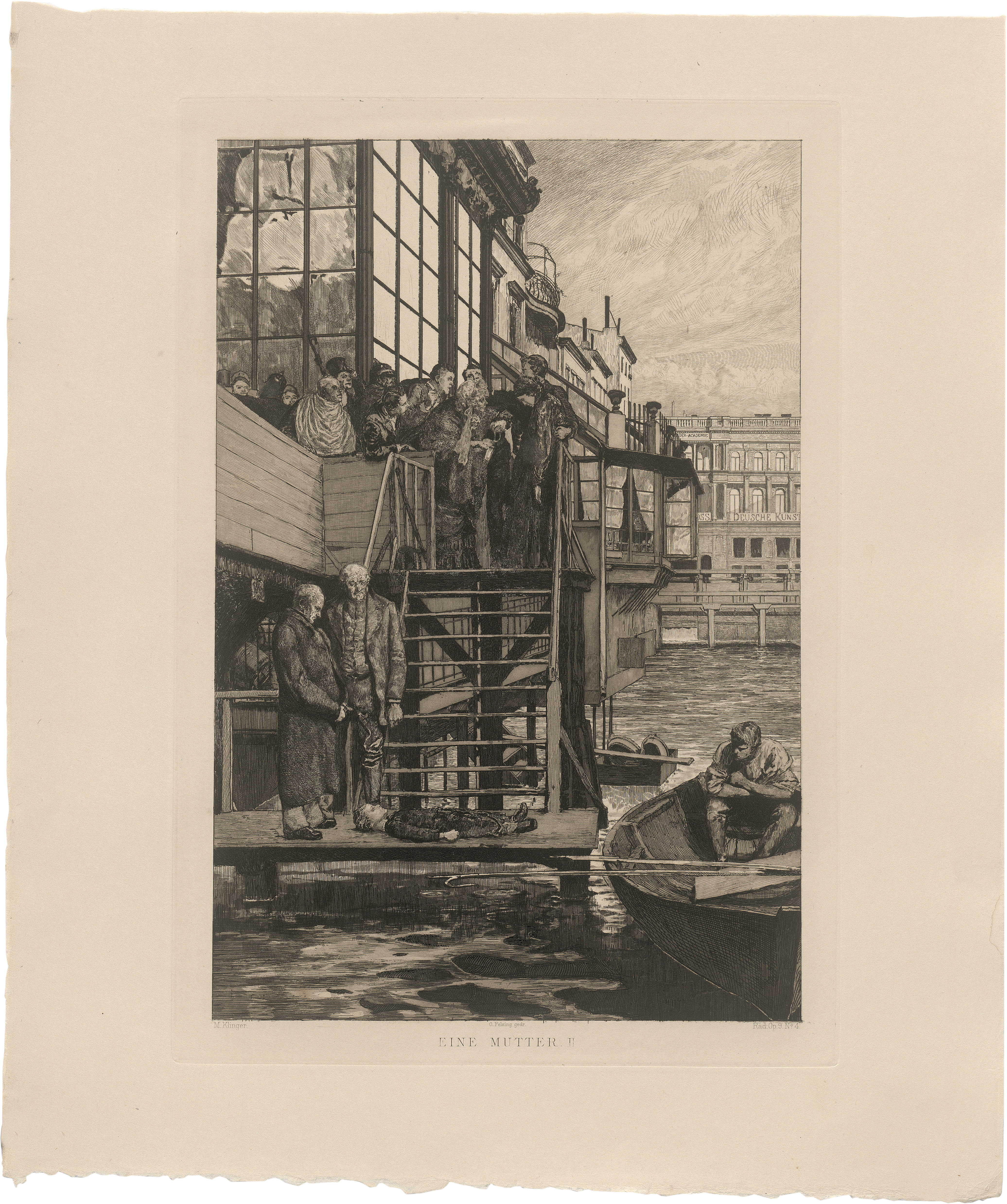 Dramen, Opus IX. 9 (von 10) Radierungen mit Aquatinta auf Imperial Japan, zzgl. 2 Blatt mit Titel und Inhaltsverzeichnis auf Kupferdruckpapier. Folio. Druck von O. Felsing. 6. Ausgabe, Berlin 1922. Singer 147 nach X, 148 nach VII, 150 nach IX, 151-152 nach VII, 153 nach VIII, 154-156 nach VII.