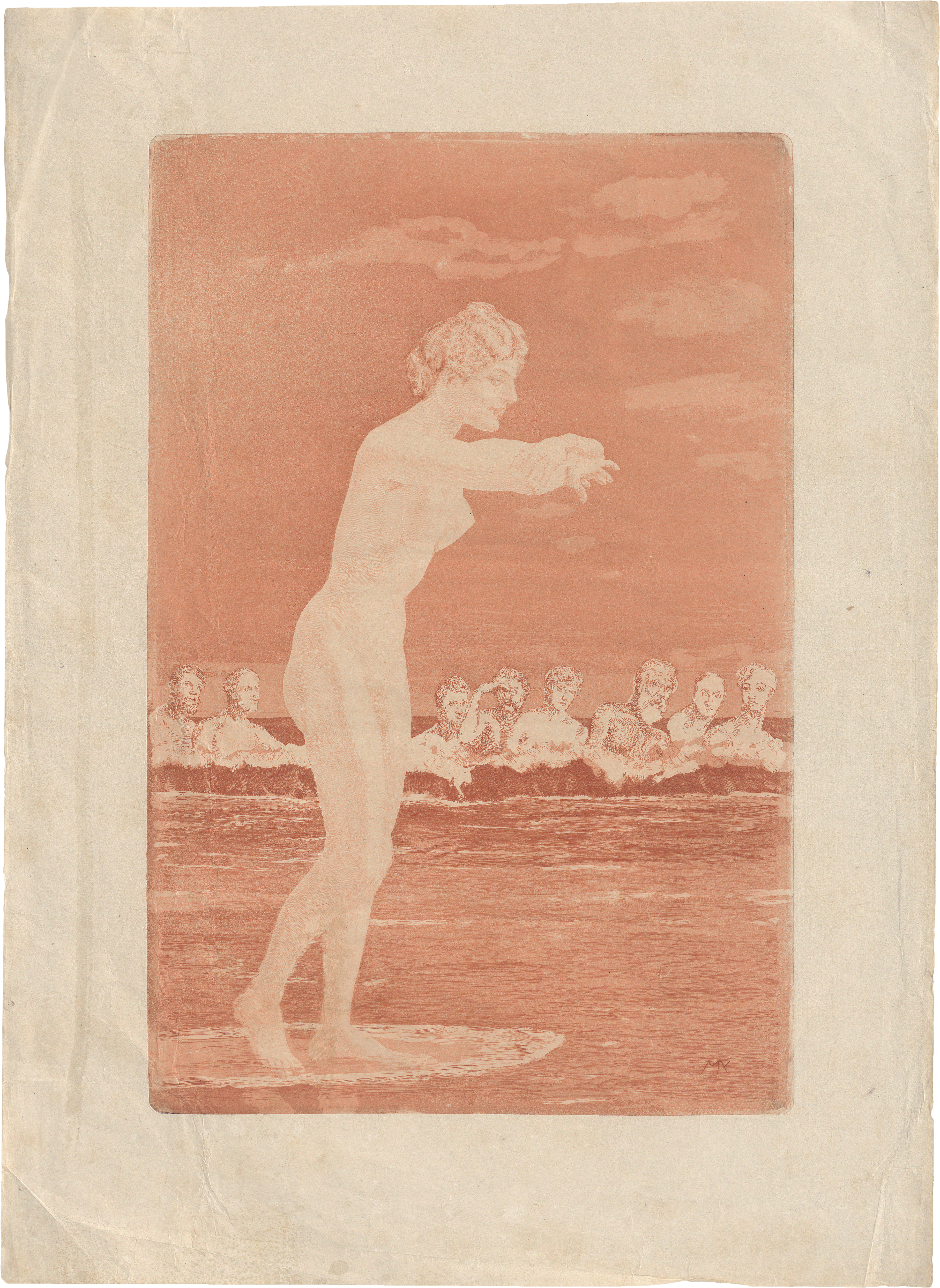Venus Anadyomene (Meereszug). Radierung mit Aquatinta in Rot, auf feinem Japanbütten. 46 x 30 cm. (1915). Beyer 424 II.