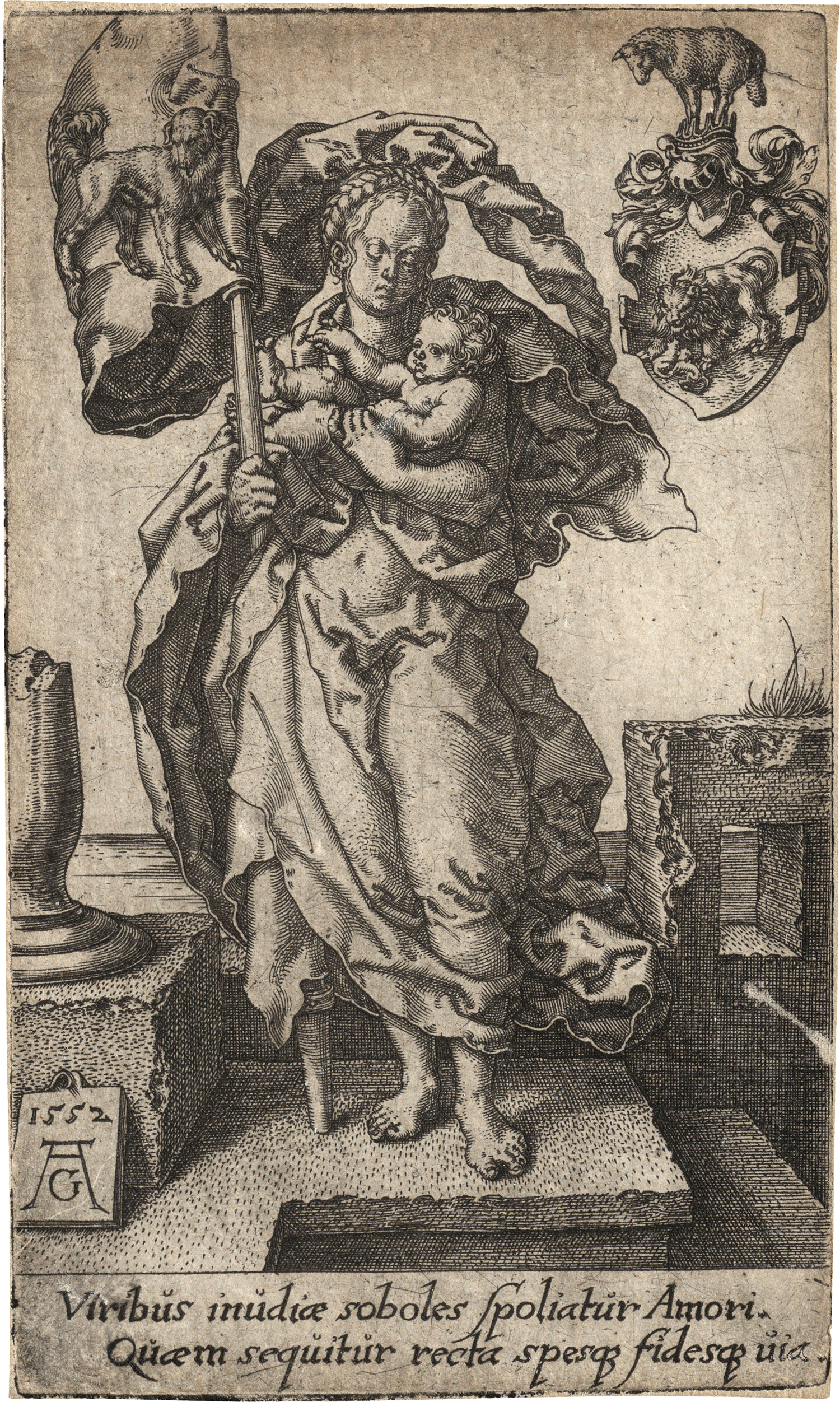 Die Allegorie der Barmherzigkeit. Kupferstich. 10,3 x 6,1 cm. 1552. B. 122, Hollstein 122, Mielke (New Hollstein) 122.