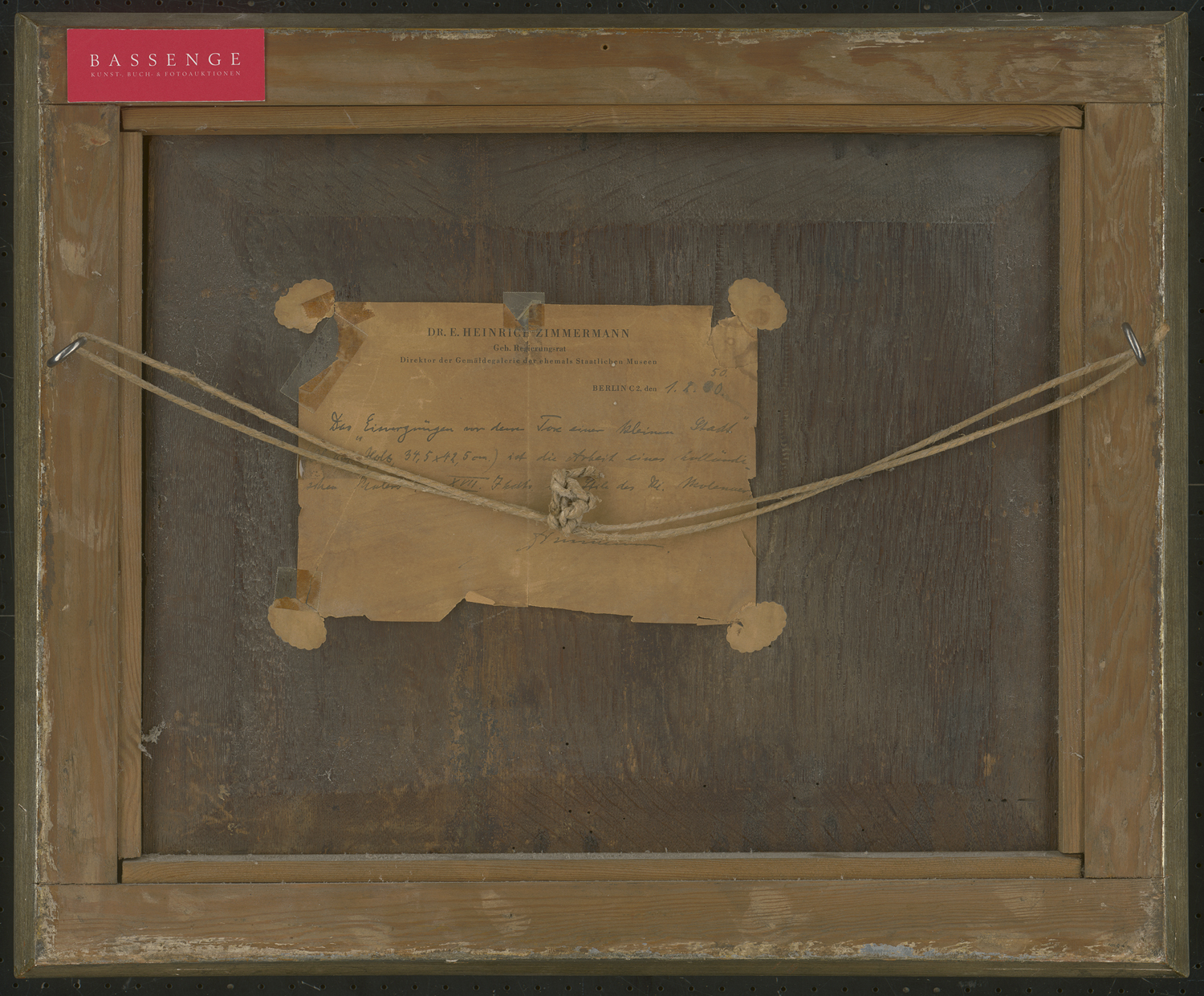 Öl auf Holz. 33 x 41,5 cm. Unten rechts von fremder Hand bezeichnet "K. Molenaer", verso montiert ein handschriftliches Gutachten von Heinrich Zimmermann, Berlin, vom 1. Februar 1950.
