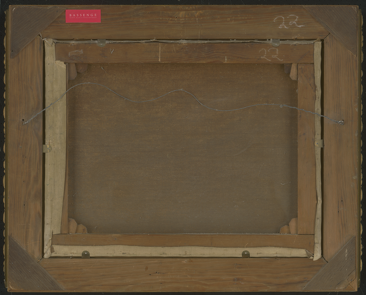 Öl auf Leinwand. 56 x 70 cm. Unten links signiert "Crola [18]78", verso auf dem Keilrahmen bezeichnet "Andenken an meinen theuren alten Freund Crola, kurz vor seinem am 6. Mai 1879 erfolgten Tode zum Geschenk erhalten [Monogramm]".