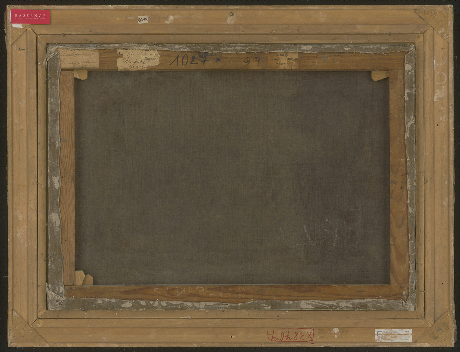 Öl auf Leinwand. 61 x 84 cm. Unten rechts signiert, datiert und bezeichnet "M. Merker Roma [19]01", verso auf dem Keilrahmen wohl eigenhändig signiert "Max Merker Weimar" sowie zwei Etiketten handschriftl. alt bez. "Max Merker / Weimar Gartenstrasse 21II / No 11 / Brunnen in der Villa Borghese (Roma)" und "Brunnen i.d. Villa Borghese / Rom December / Max Merker / Weimar" und ein Etikett des "Kunstsalon Gerstenberger Weimar 871"