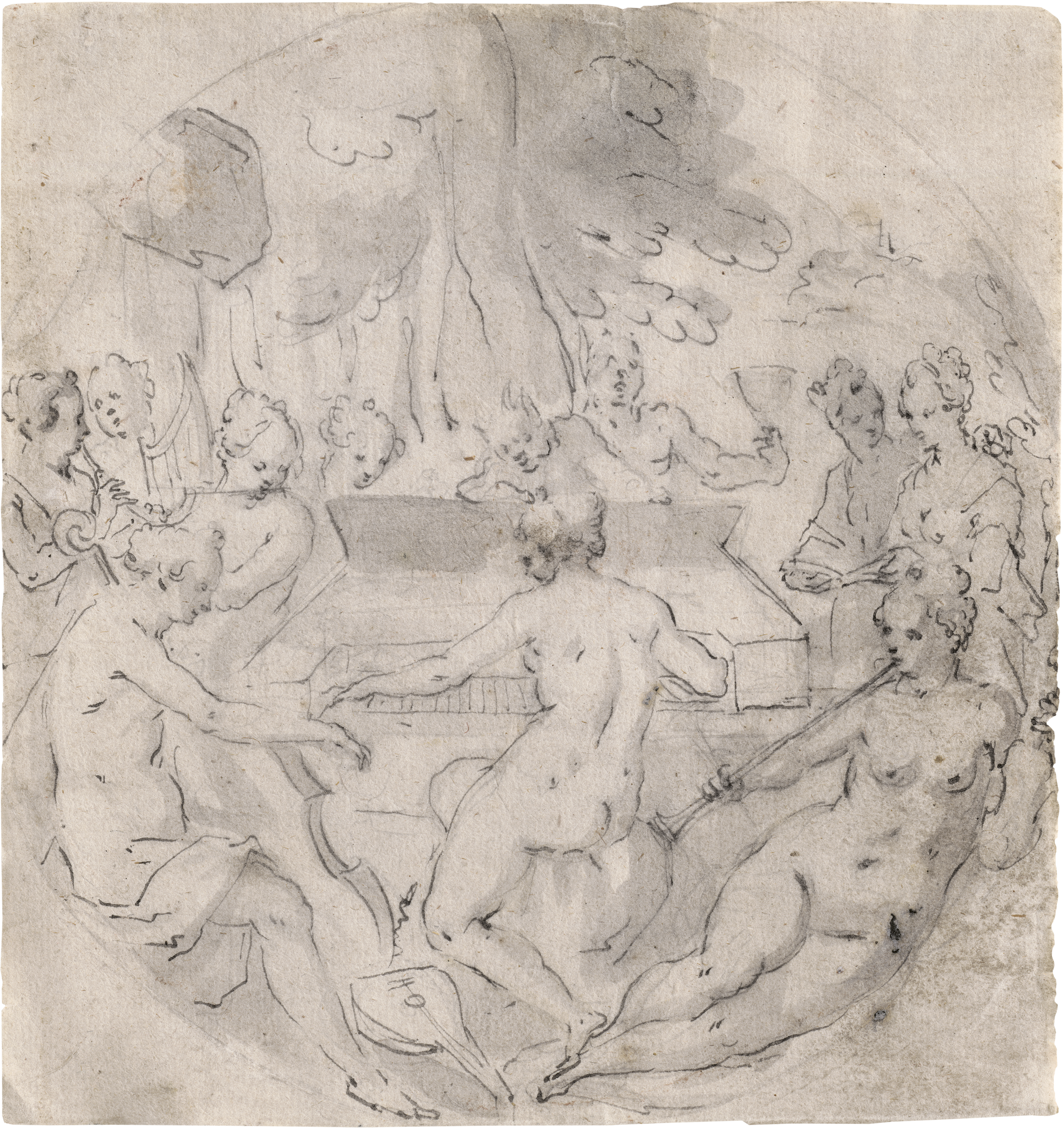 Umkreis. Die neun Musen auf dem Parnass, musizierend.