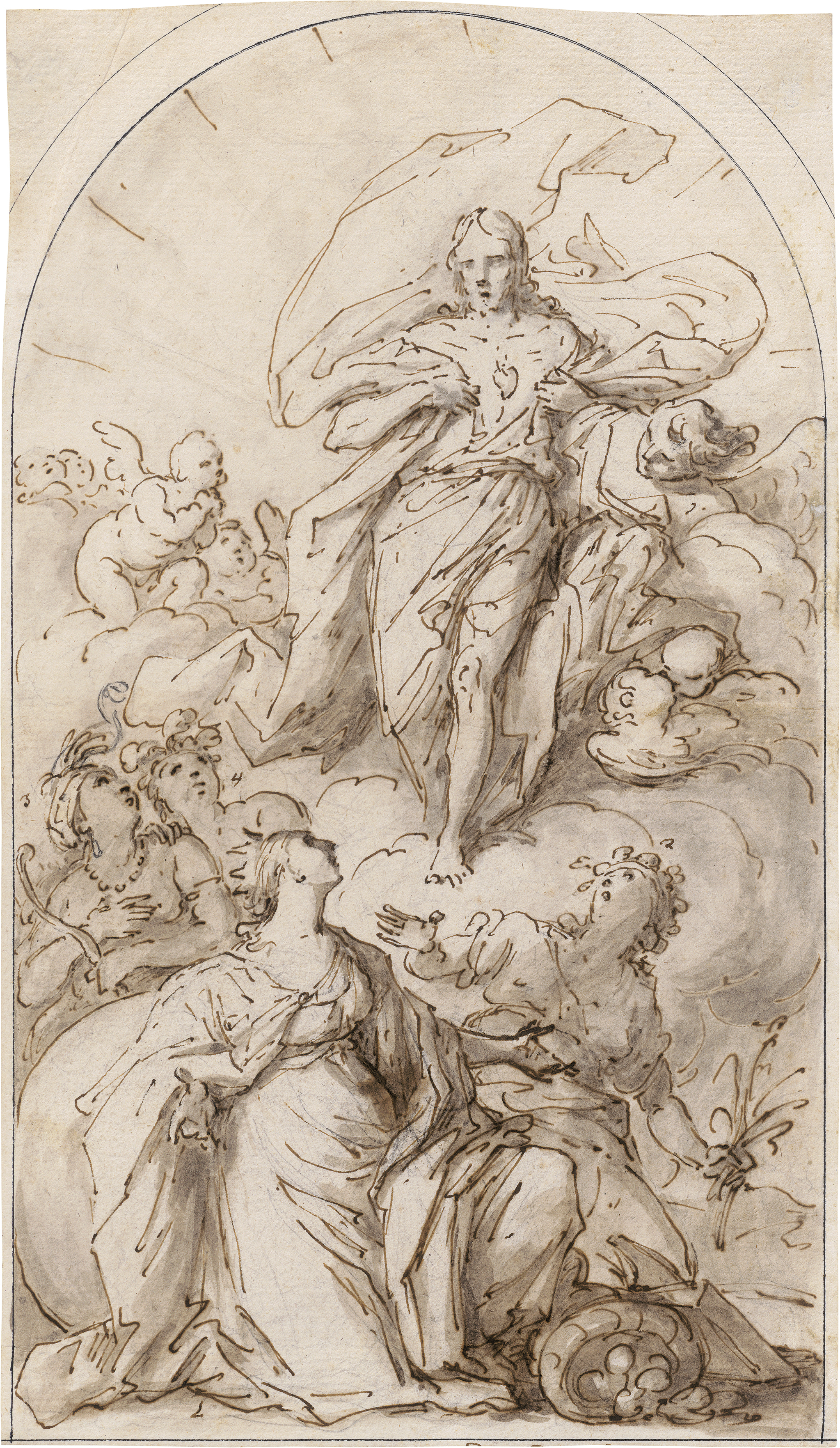 (um 1743 - nach 1818, Florenz)Christi auf Wolken umgeben von Engeln, angebetet von vier weiblichen Figuren