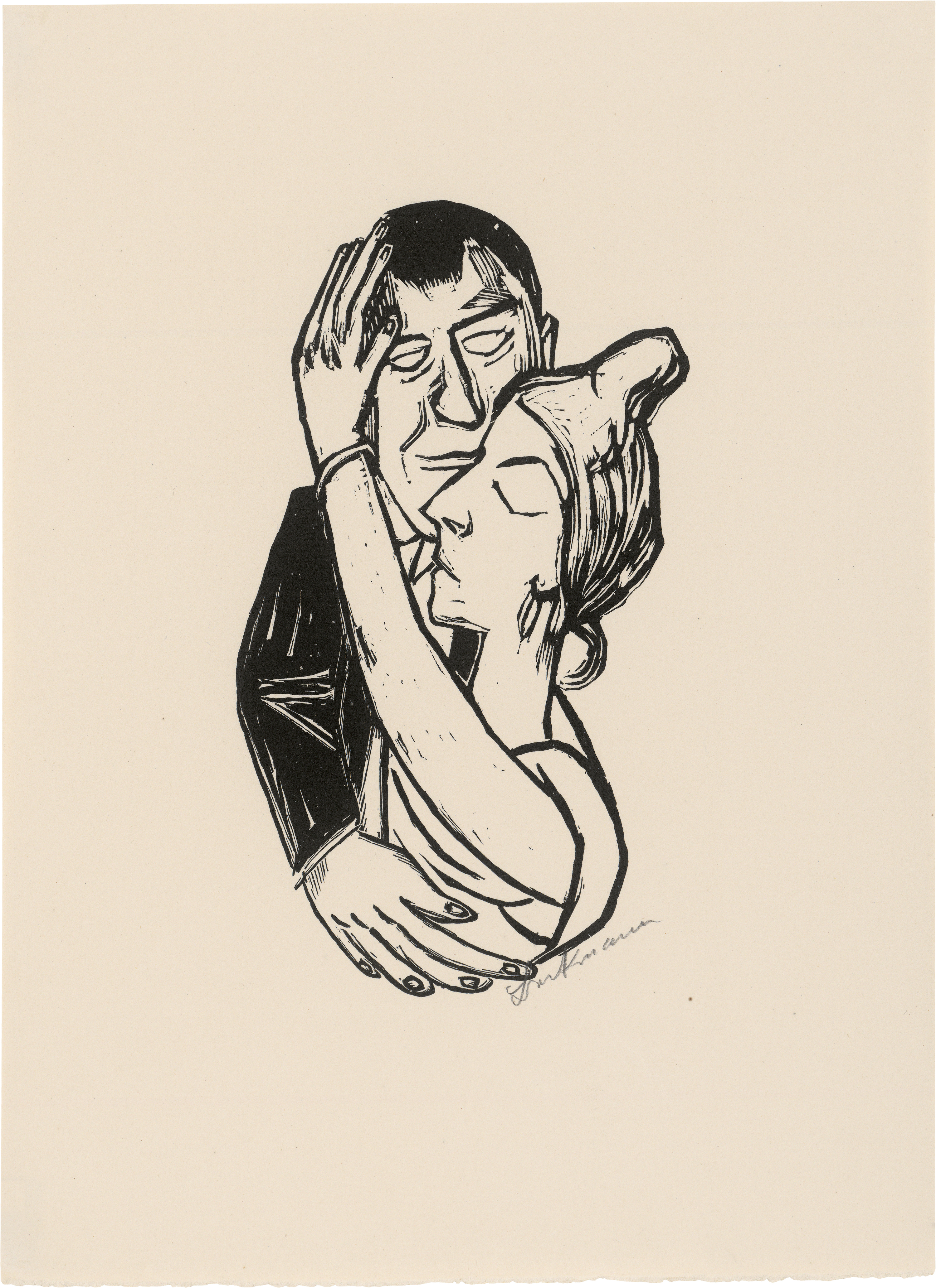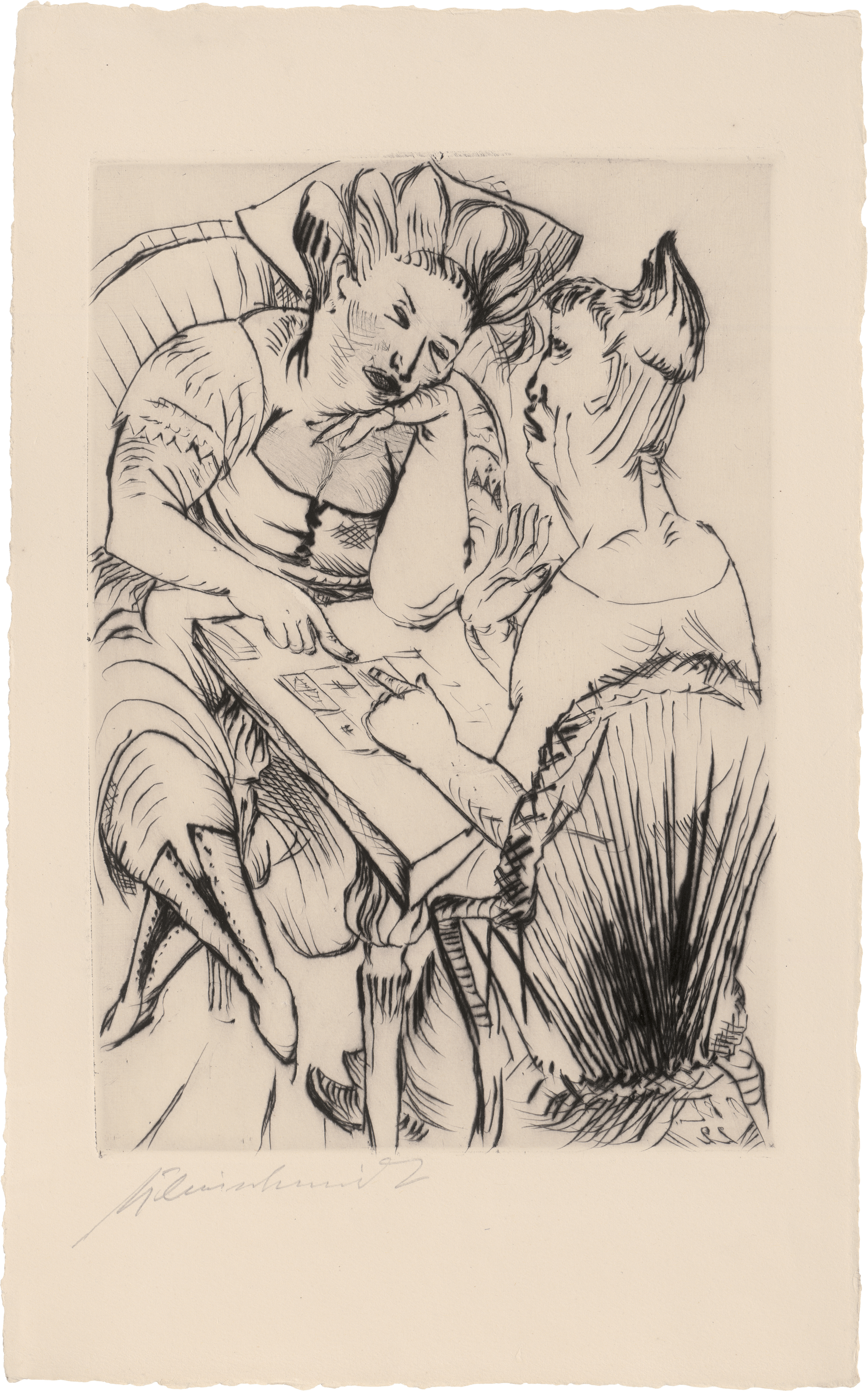 Die vollständige Mappe, herausgegeben von Julius Meier-Graefe, erschienen in einer Gesamtauflage von 2370 Exemplaren bei R. Piper, München 1922. Exemplar der Vorzugsausgabe des Vierten Jahrbuches der Marées-Gesellschaft. Enthält folgende Graphiken: Max Beckmann "Tanzende", Holzschnitt (Hofmaier 228 B a), Heinrich Campendonk "Die Bettler", Holzschnitt (Engels 62), Rudolf Grossmann "Zigeunerwagen", Radierung, Franz Hecht "Aus dem Leben des Hl. Franz", Holzschnitt, Karl Hofer "Novize", Lithographie (Rathenau L 30), Paul Kleinschmidt "Bei der Kartenschlägerin", Radierung, Felix Meseck "Landschaft mit Ziegen", Radierung, Karl Rössing "Der eingebildete Kranke", Holzschnitt, Richard Seewald "Aus dem Camposanto", Holzschnitt (Jentsch H 116), Peter Trumm "Coriolan und seine Mutter", Holzschnitt und Max Unold "In Memoriam René Beeh", Holzschnitt. Prachtvolle Drucke mit dem vollen Rand.