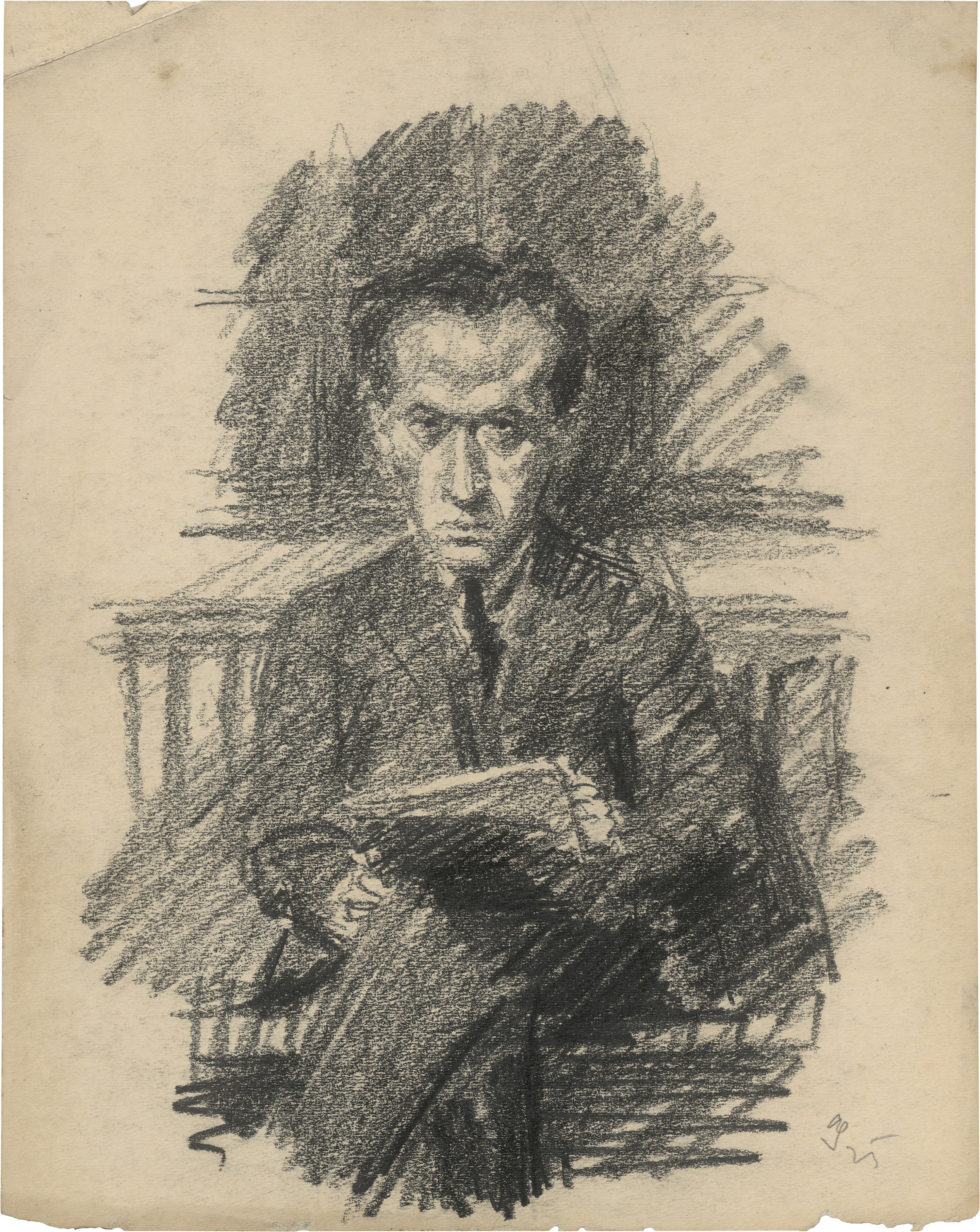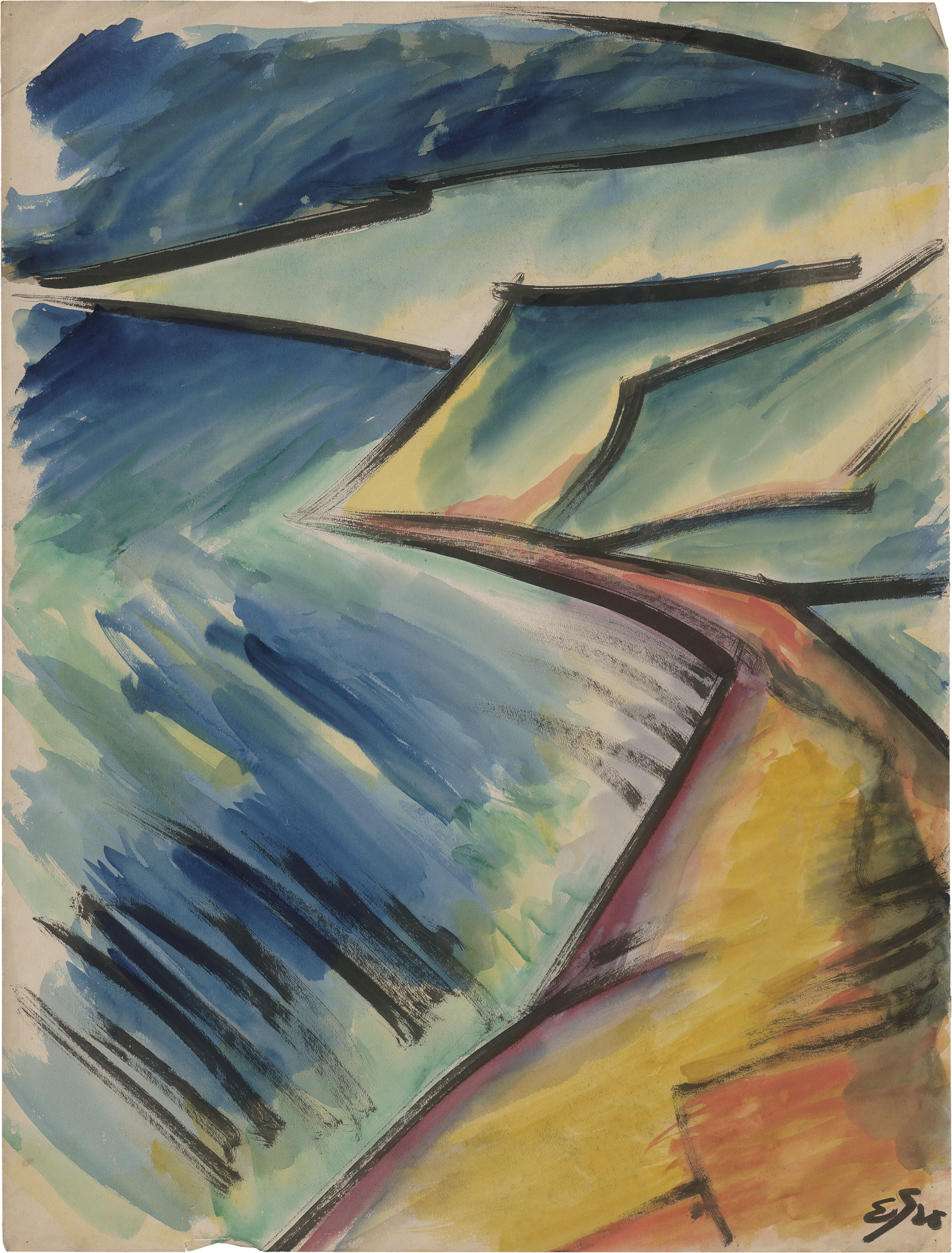 14 Holzschnitte, 1 Lithographie, 7 Zeichnungen und 3 Aquarelle, teils mit Deckfarbe, auf verschiedenen Papieren. Meist wohl um 1914-20.
