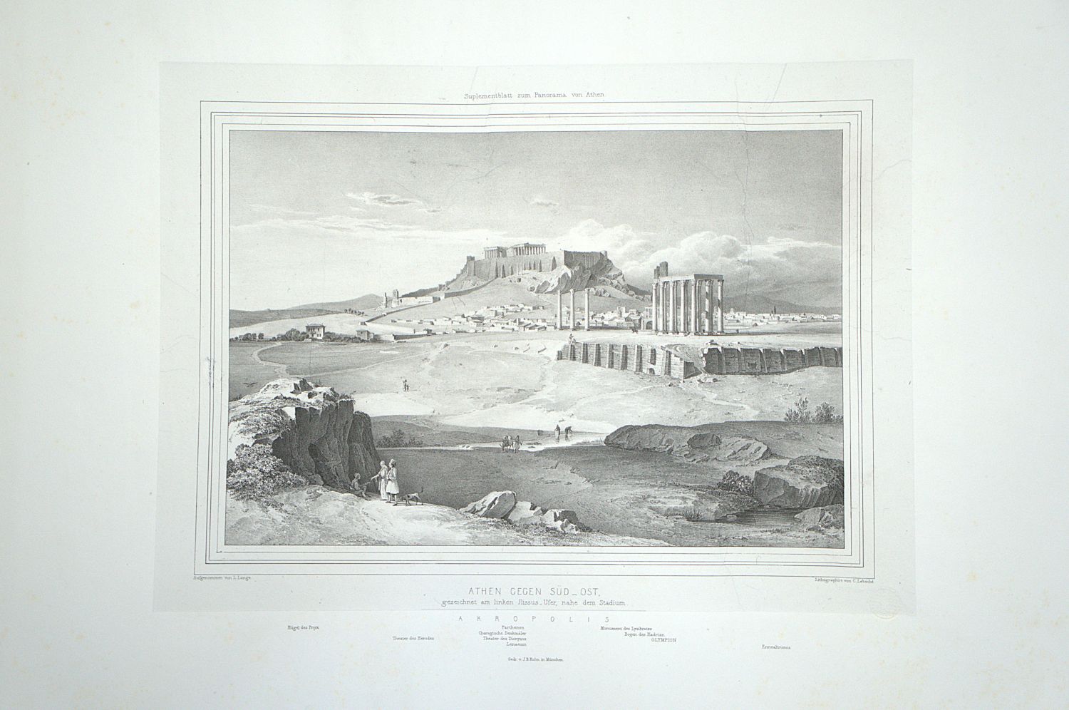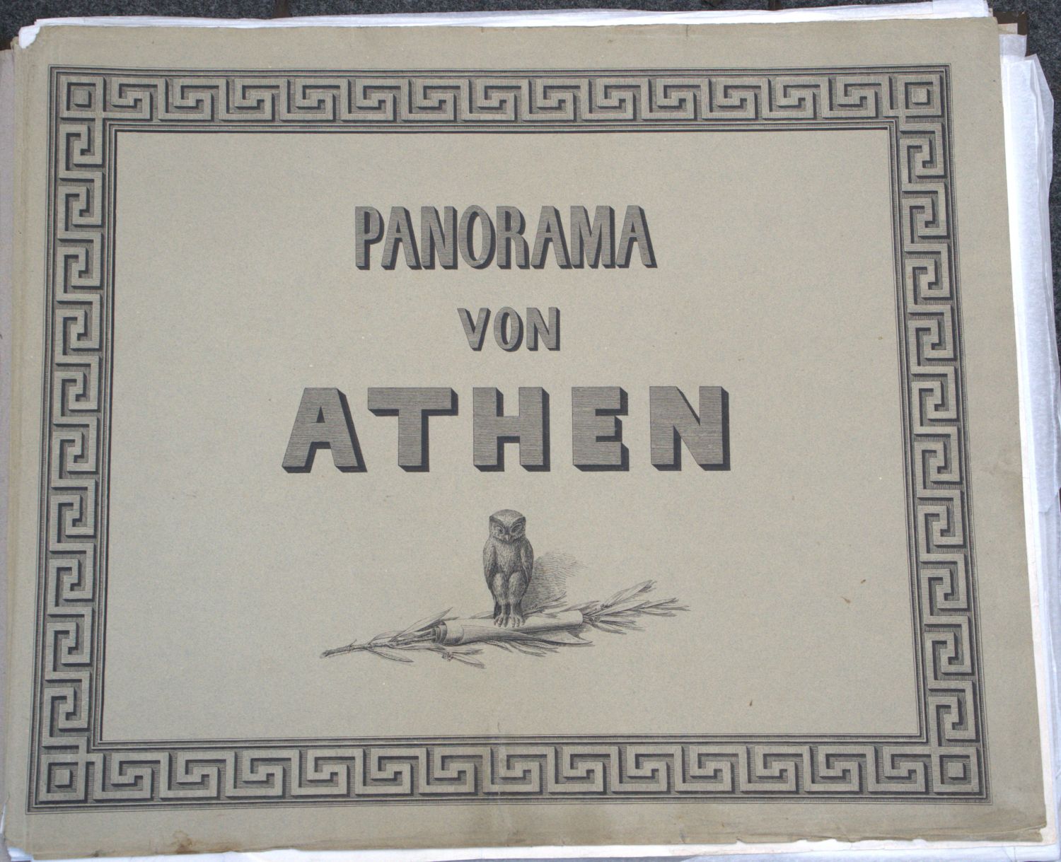 Blackmer 1595. Engelmann I, 293. UCBA II, 1922. Thieme-Becker XXXI, 434. – Erste und einzige Ausgabe der prächtigen Ansichtenfolge mit zehn größeren Veduten, die zusammengelegt ein Gesamtpanorama von Athen ergeben, das durch die Umrißlithographien auf den Schutzblättern erläutert wird, sowie sechs kleineren Darstellungen von der Akropolis, dem Nympheion, Athener Innenstadt, Athen gegen Norden, dem Stadion bei Athen und dem Kloster Siriani.