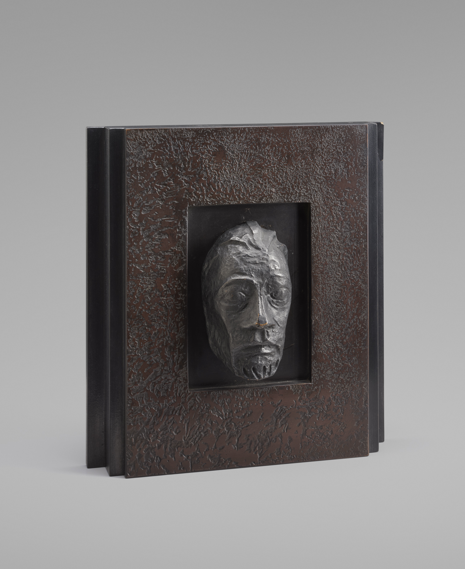 Bronze mit dunkelbrauner Patina, lose in Holzrahmen montiert. 1931/nach 1938.