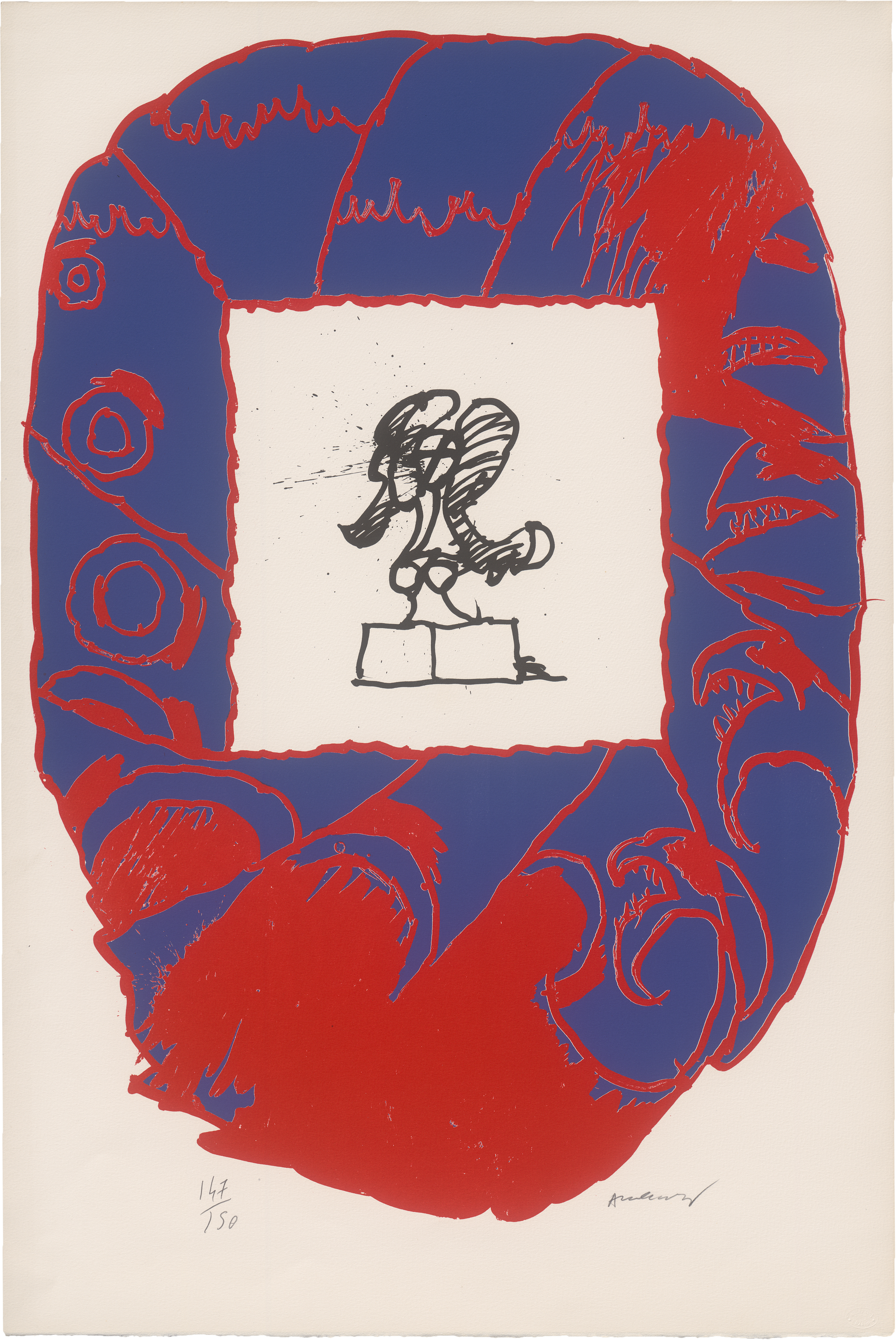 Erschienen in einer Gesamtauflage von 175 Exemplaren, herausgegeben vom Atelier Clot, Paris, mit dessen Blindstempel unten rechts; gedruckt bei Clot, Bramsen & Georges, Paris. Das Rahmenmotiv fand zudem Verwendung für das Plakat zur Ausstellung Alechinskys im Musée d'Art Moderne de la Ville de Paris 1975. Prachtvoller Druck mit dem vollen Rand, unten mit dem Schöpfrand.