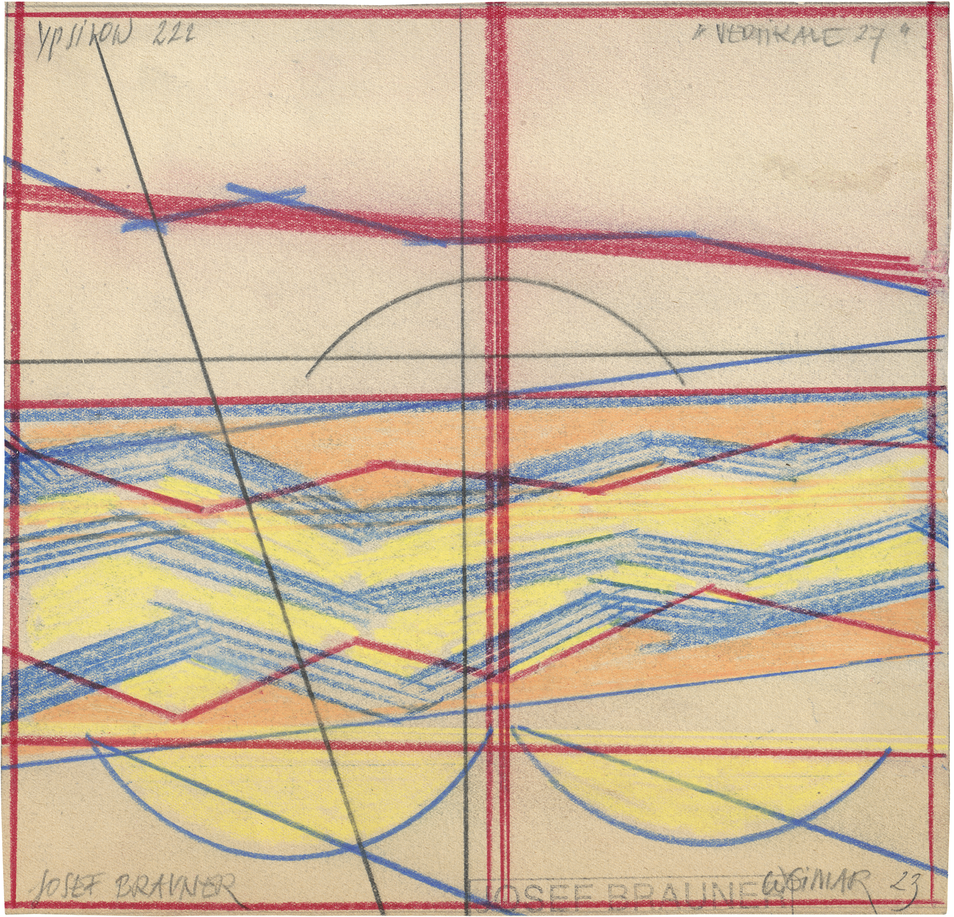 Unten links mit Bleistift signiert "Josef Brauner", rechts datiert und bezeichnet "Weimar" sowie mit angeschnittenem Stempel "JOSEF BRAUNER BERLIN BOSTON", verso erneut mit Bleistift signiert, datiert, betitelt und mit dem Künstlerstempel.