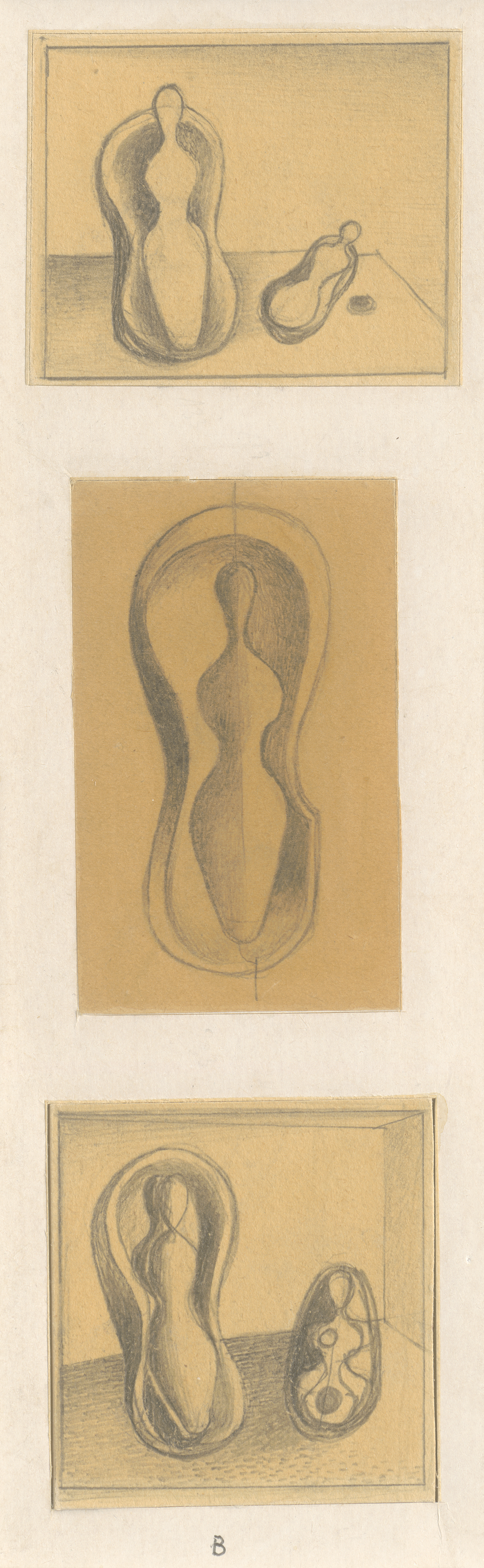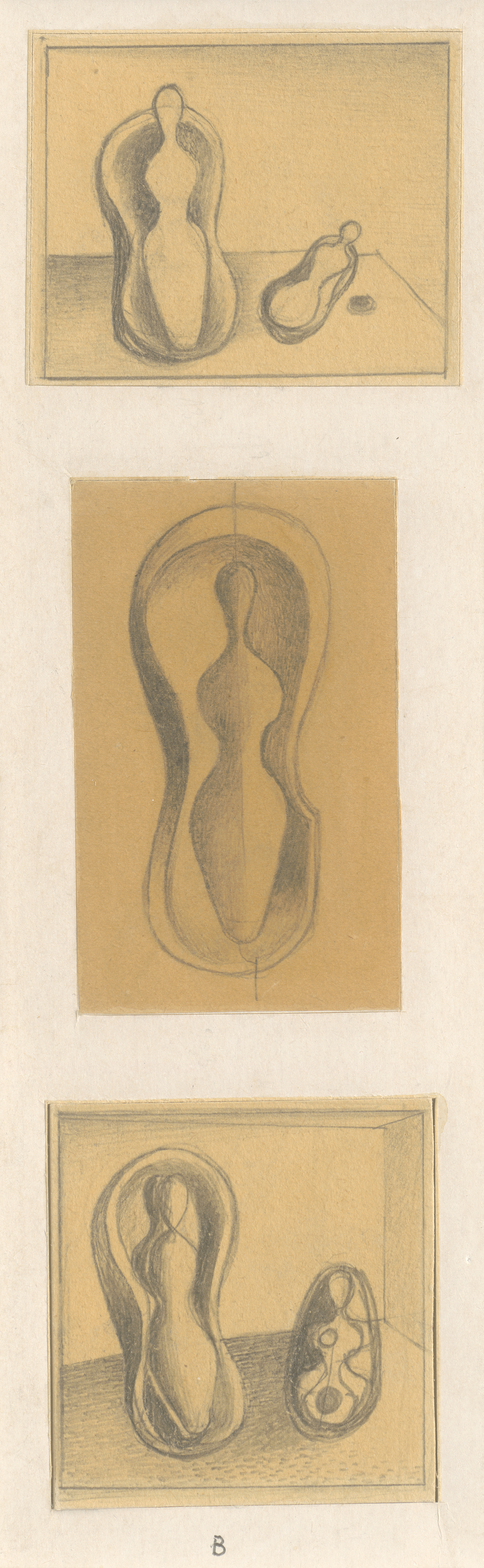 3 Bl. Bleistift auf bräunlichem Velin, zusammen auf Karton kaschiert. 1929.