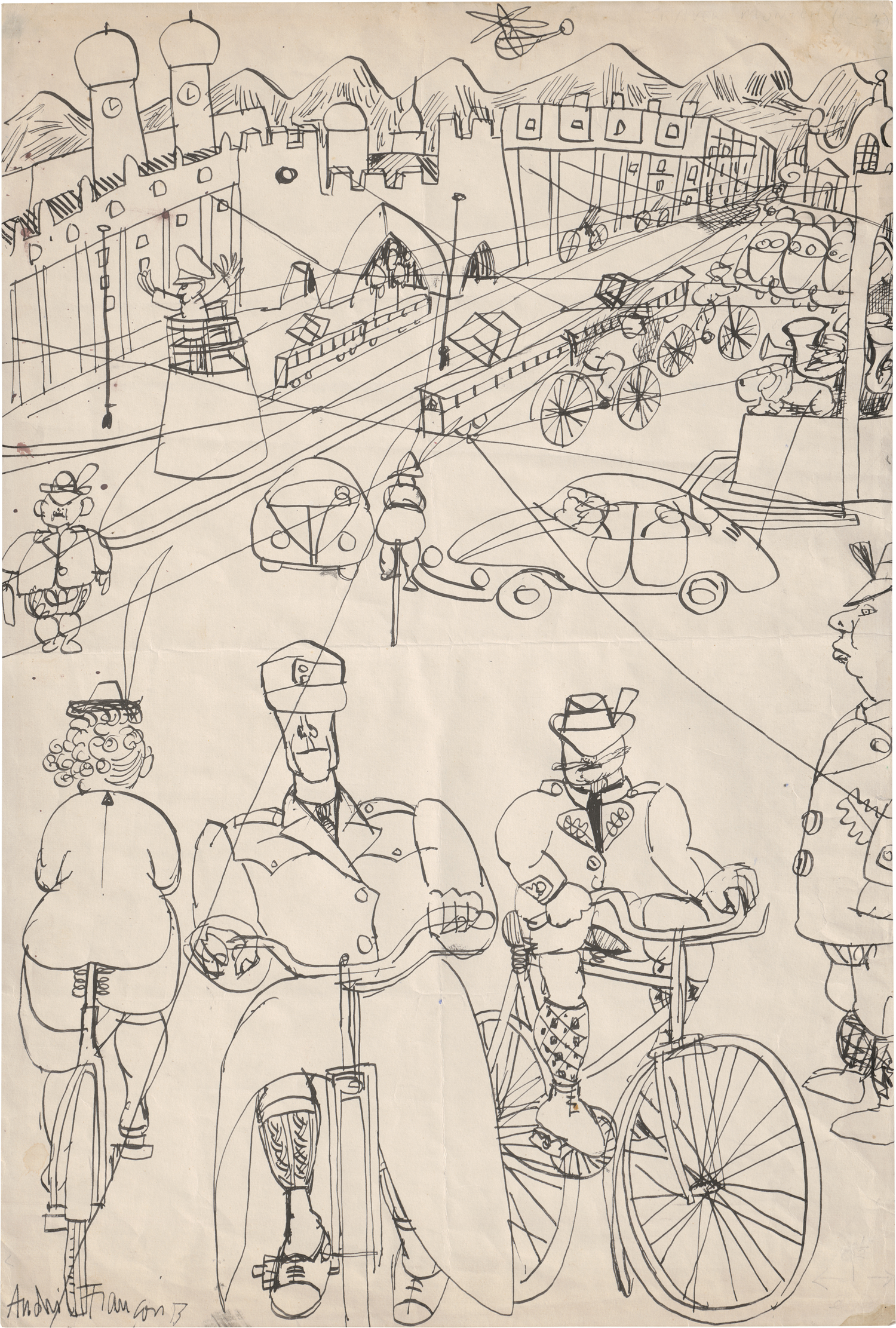 Unten links mit Feder in Schwarz signiert "André François", verso mit Bleistift (von fremder Hand?) betitelt und bezeichnet.