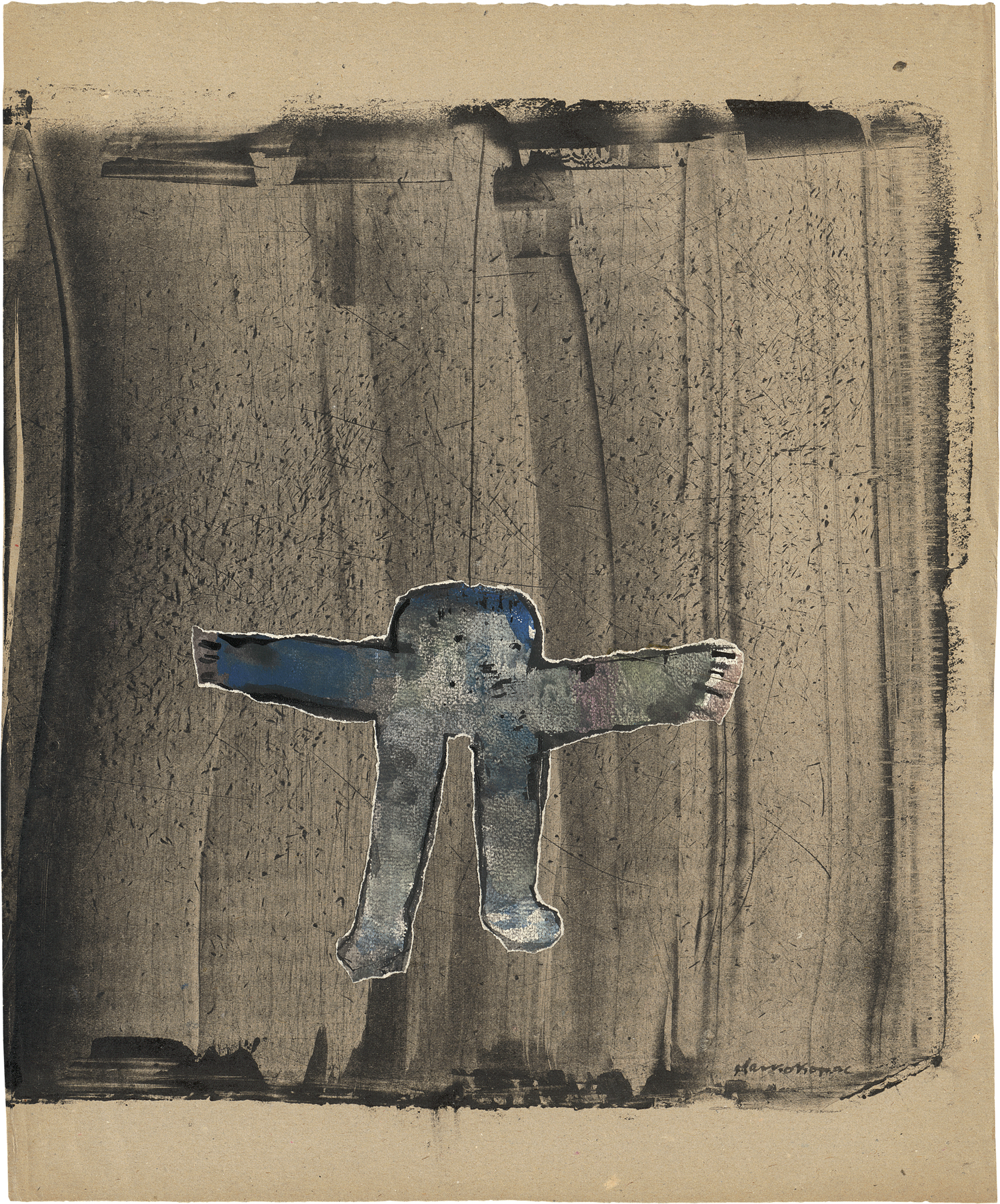 Aquarell und collagiertes Papier auf Velin.