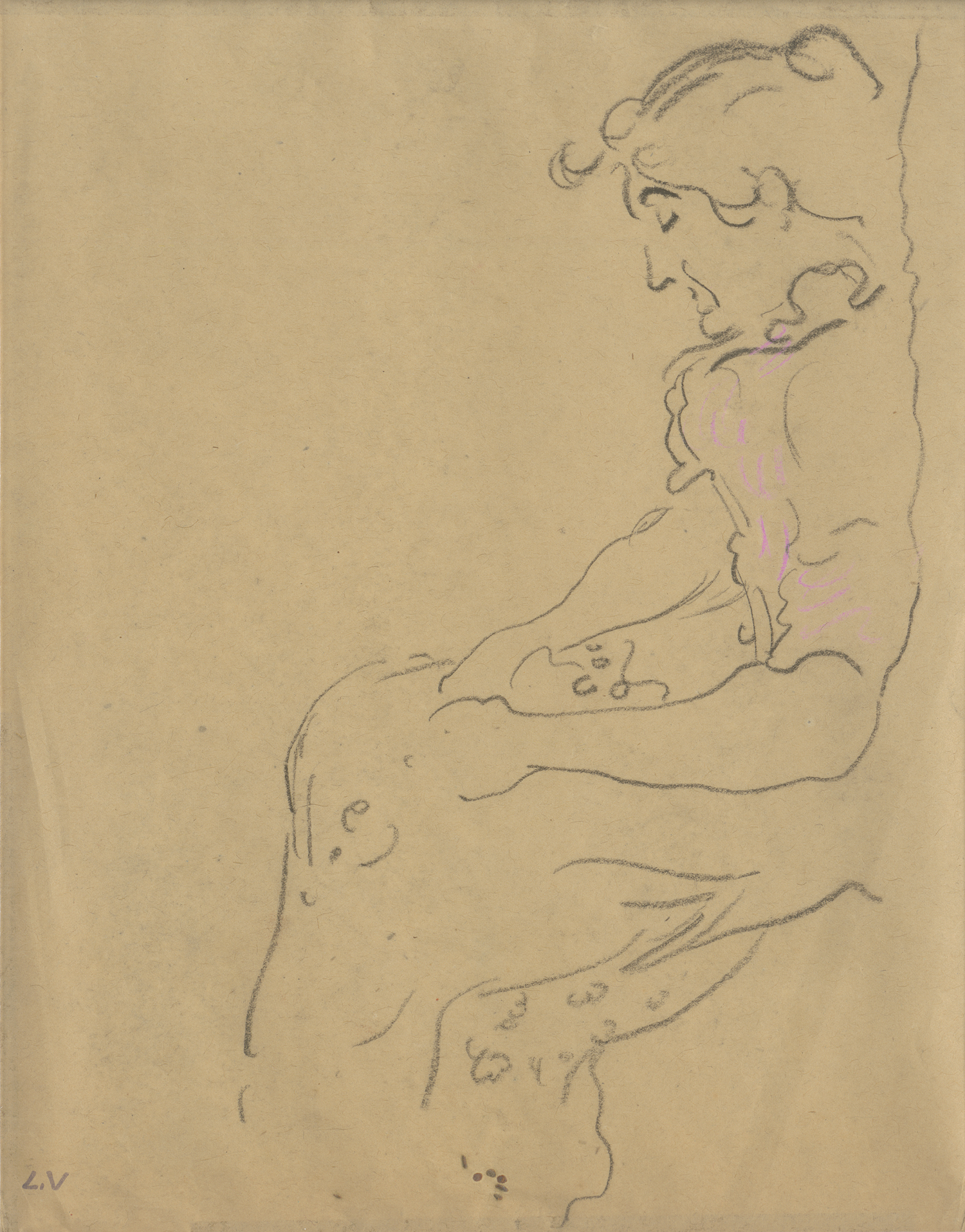 Schwarze und farbige Kreiden auf bräunlichem Velin. Um 1897.