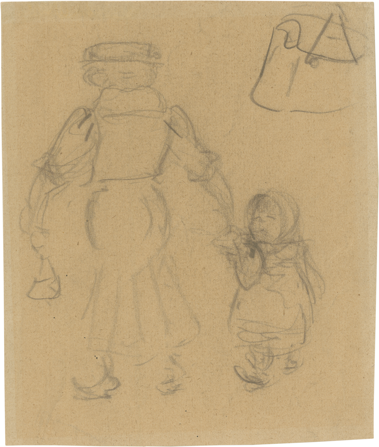 Mit sicherem Strich erfasst Zille die Mutter mit Kind beim Spaziergang.