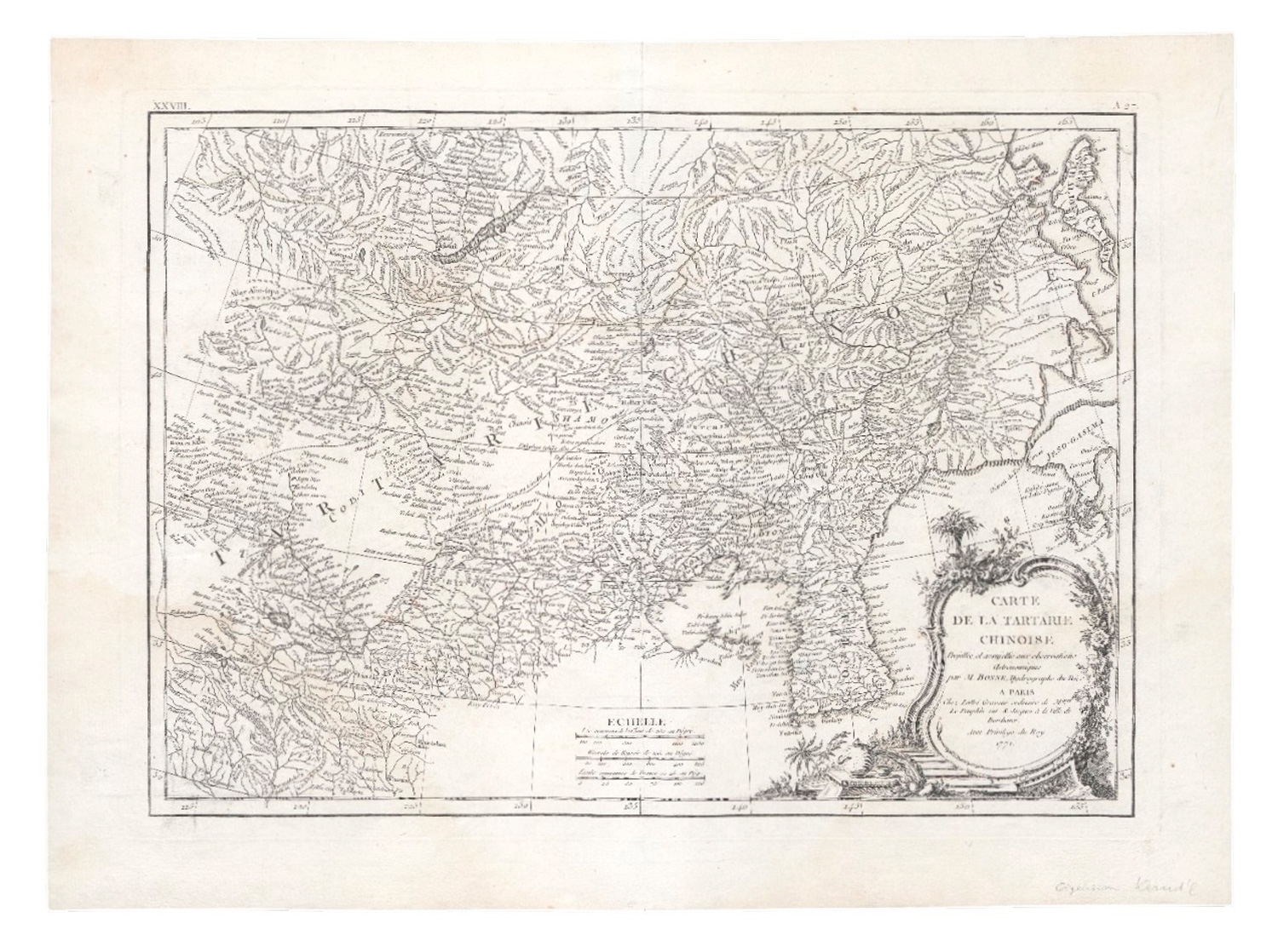 Bonne, Rigorbet. Carte General de la Tartarie Chinoise. Kupferkarte. 31,5 x 43 cm (Plattenrand) bzw. 36,5 x 49,5 cm (Blatt). Paris 1771.