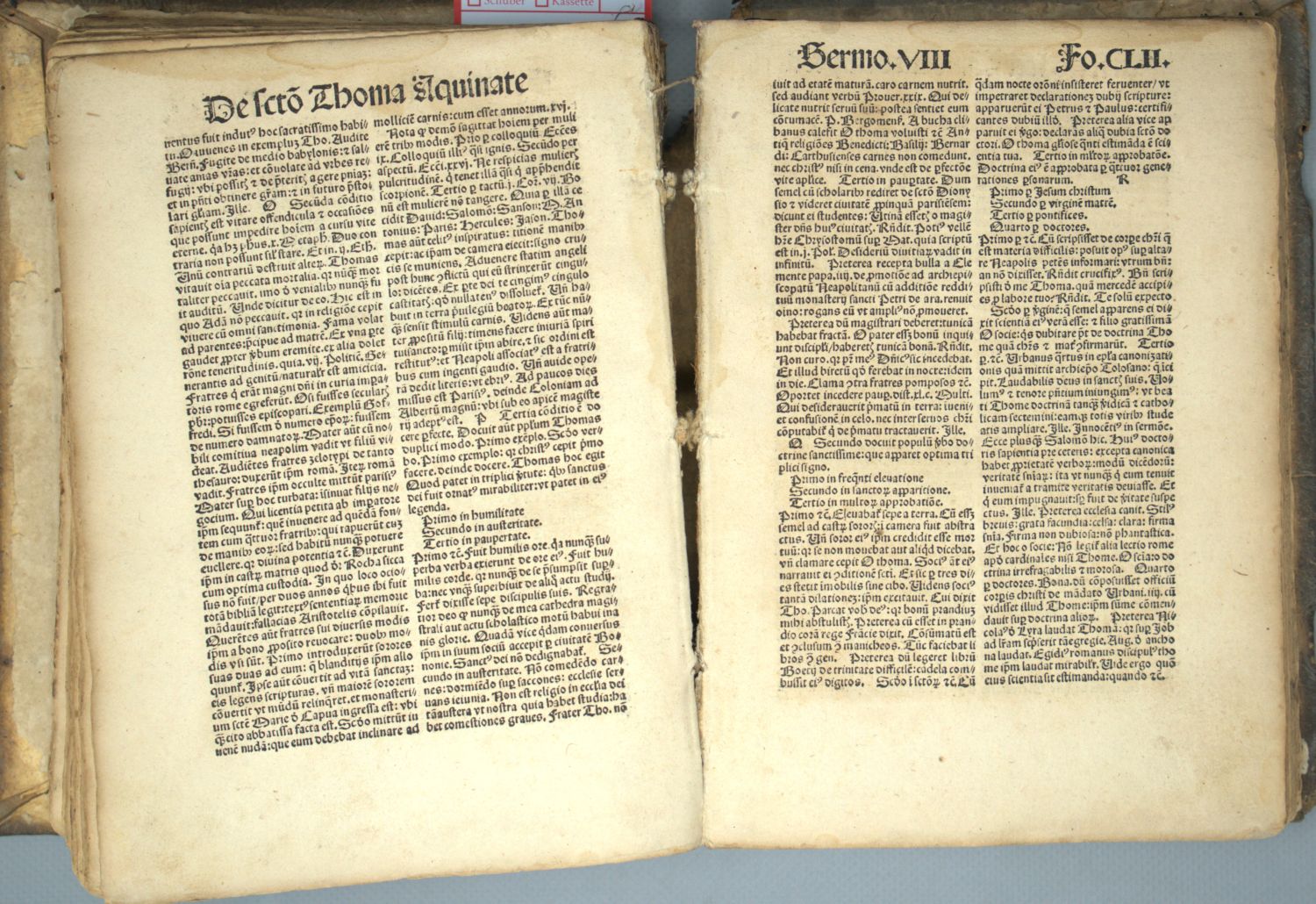 Barletta, Gabriel. Sermones fratris Gabrielis Barelete sacre pagine professoris divi Ordinis fratrum Predicatorum. 21 (von 23) Bl., CXCIX num. Bl. 22 x 15 cm. Blindgeprägtes Schweinsleder d. Z. (stark lädiert, lose, berieben, mit Fehlstellen und ohne die Messingschließen). Augsburg und Hagenau, Rynman und Gran, 1510.