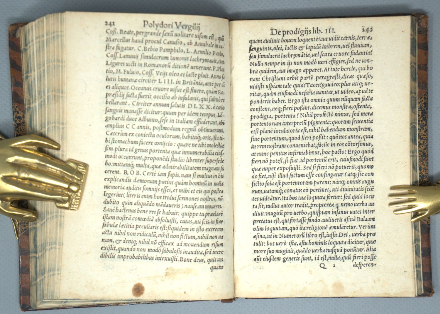 Brunet IV, 147. VD 16, O 178. Adams O 8. Caillet 8131. – "Édition rare, et la plus complète, selon Brunet, avec de bien curieuses figures sur bois dans le texte représentant des monstruosités humaines et animales: enfants à tête d'éléphants, sans yeux, ni nez; sans bras, ni jambes; à plusieurs jambes; porcs à tête d'homme; à deux têtes; coqs à cinq pattes..." (Caillet). – Fester Vorsatz mit 9-zeiliger Notiz von alter Hand. Titel gebräunt und fleckig. Wasserrandig und gelegentlich braun- und stockfleckig.
