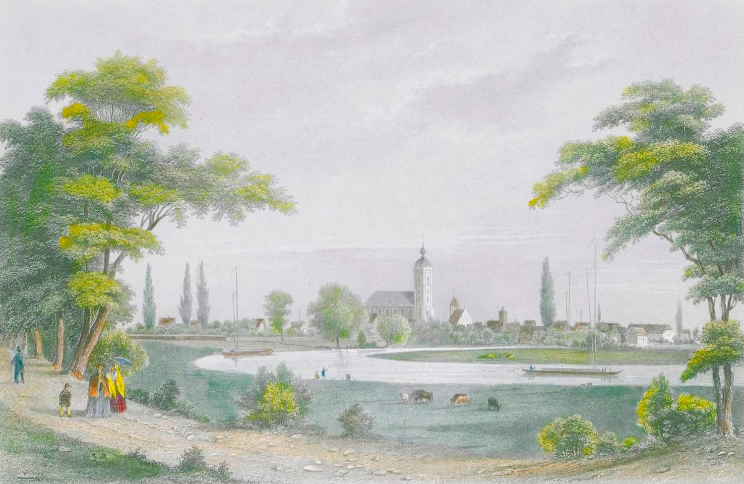 Brandenburg. 19 teils kolorierte Kupferstiche mit Ansichten von Brandenburg von Poppel und Kurz nach J. Gottheil. 18,5 x 25 cm (Plattenrand). Mit Passepartout. Hamburg, B. S. Berendsohn, um 1842.