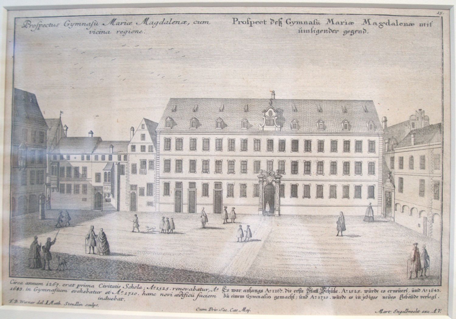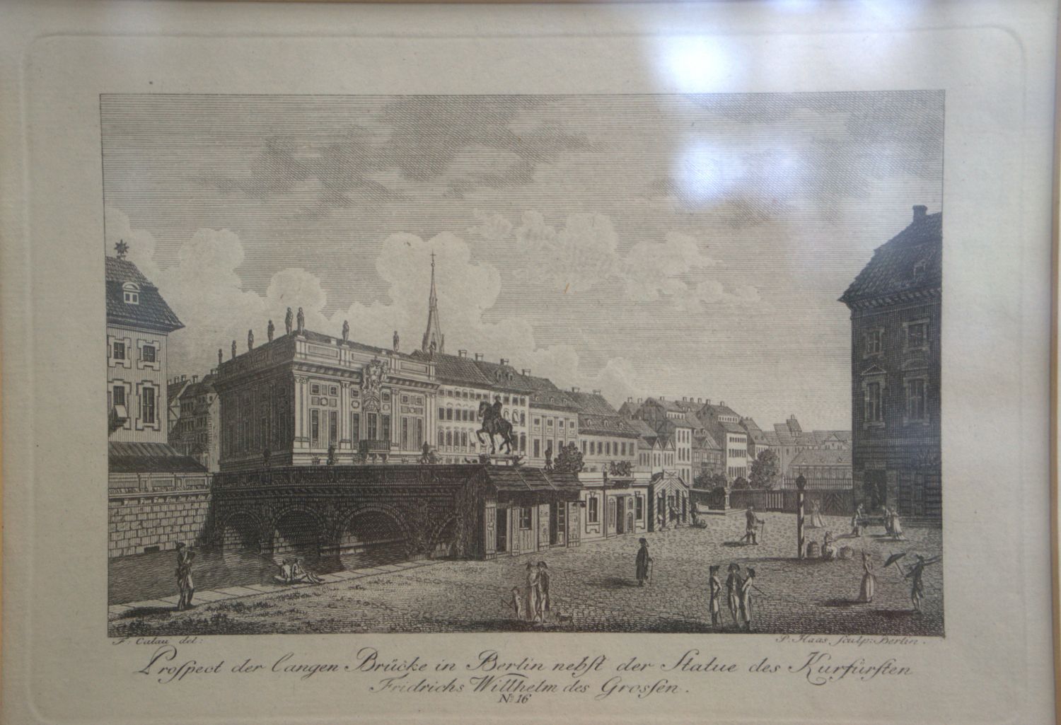 Breslau. Konvolut von 10 Holzschnitten und teils kolorierten Kupferstichen. 9,5 x 18 cm bis 38 x 29 cm (Plattenrand). Unter Glas mit Passepartout in teils goldgeprägten Holzprofilleisten. Verschiedene Orte und Drucker, 1500-1791.