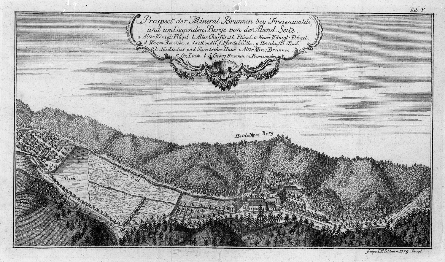 Kuhn 310. NDB VII, 482. Ferchl 210. Schreckenbach, Brandenburg, 14053. – Einzige Ausgabe der frühen Beschreibung des märkischen Kurbades an der Oder, eines "Lieblingsbades der Hohenzollern". Der Verfasser war "seit etwa 1770 Inhaber hoher staatlicher und ständischer Ämter. Von seinen literarischen Werken haben insbesondere die lokalgeschichtlichen durch Quellenbenutzung und genealogische Angaben bleibenden Wert". Die Tafeln zeigen Grundrisse, Pläne und Ansichten aus der Vogelschau. – Etwas gebräunt und braun- oder stockfleckig, Vorsatz und Titel mit überklebtem Besitzeintrag, die erste Tafel mit dezenten Markierungen.