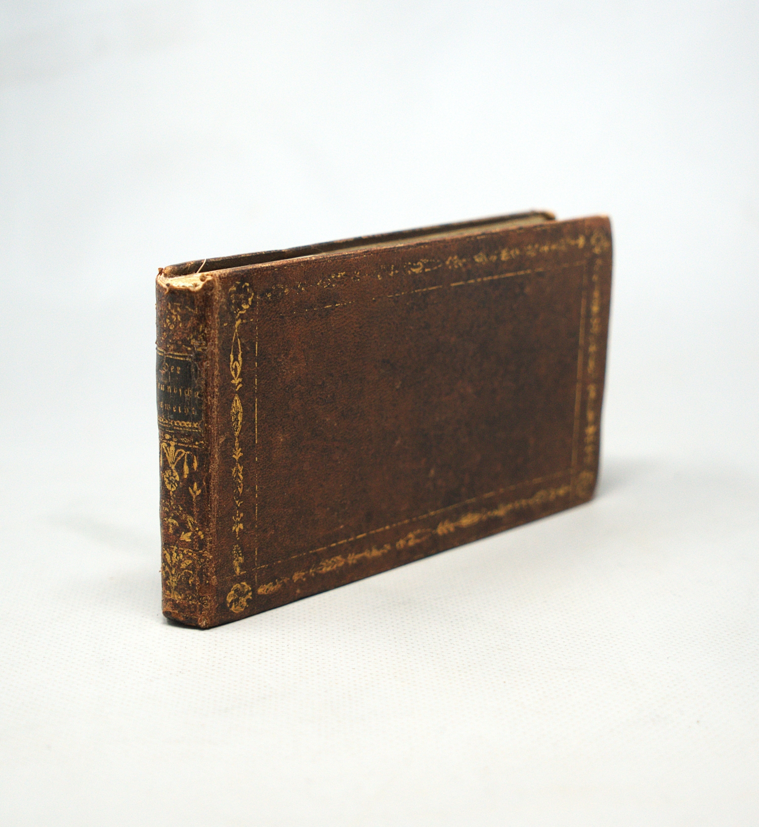Stammbuch des Carl Felix Colberg aus Magdeburg oder Berlin, wo die Mehrzahl der Verwandten wohnte. Ca. 73 Bl., davon 41 S. beschrieben oder illustriert. Mit 7 aquarellierten Federzeichnungen und 3 kolorierten Kupferstichen. Quer-8vo. Brauner Lederband d. Z. (berieben, das Kapital etwas defekt) mit goldgepr. Bordüren auf beiden Deckeln, Rückenvergoldung mit Rückenschild "Der Freundschaft geweiht" sowie Stehkantenvergoldung und Goldschnitt. 1812-1814.