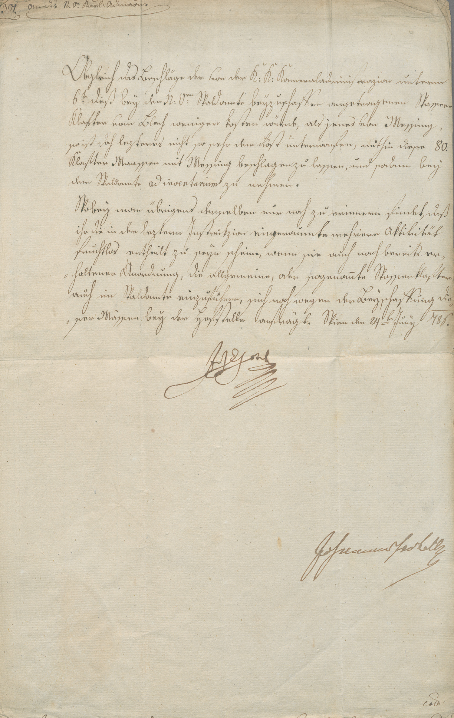 (1741-1790)Brief an die Wiener Kameraladministration. 1786