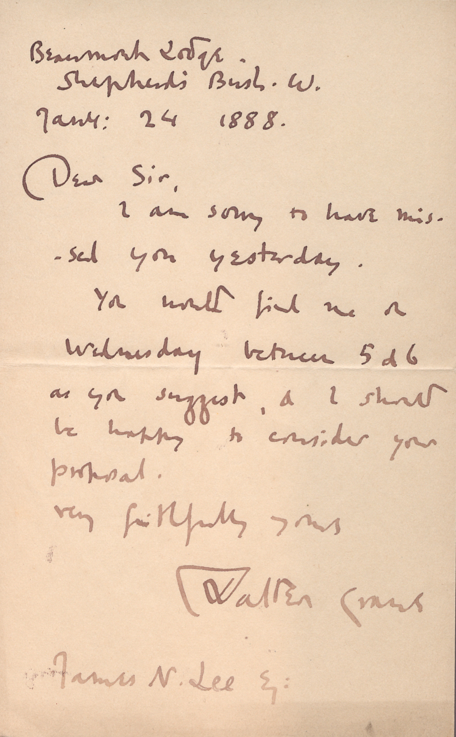 (1845-1915)Brief an einen Herrn. 1888