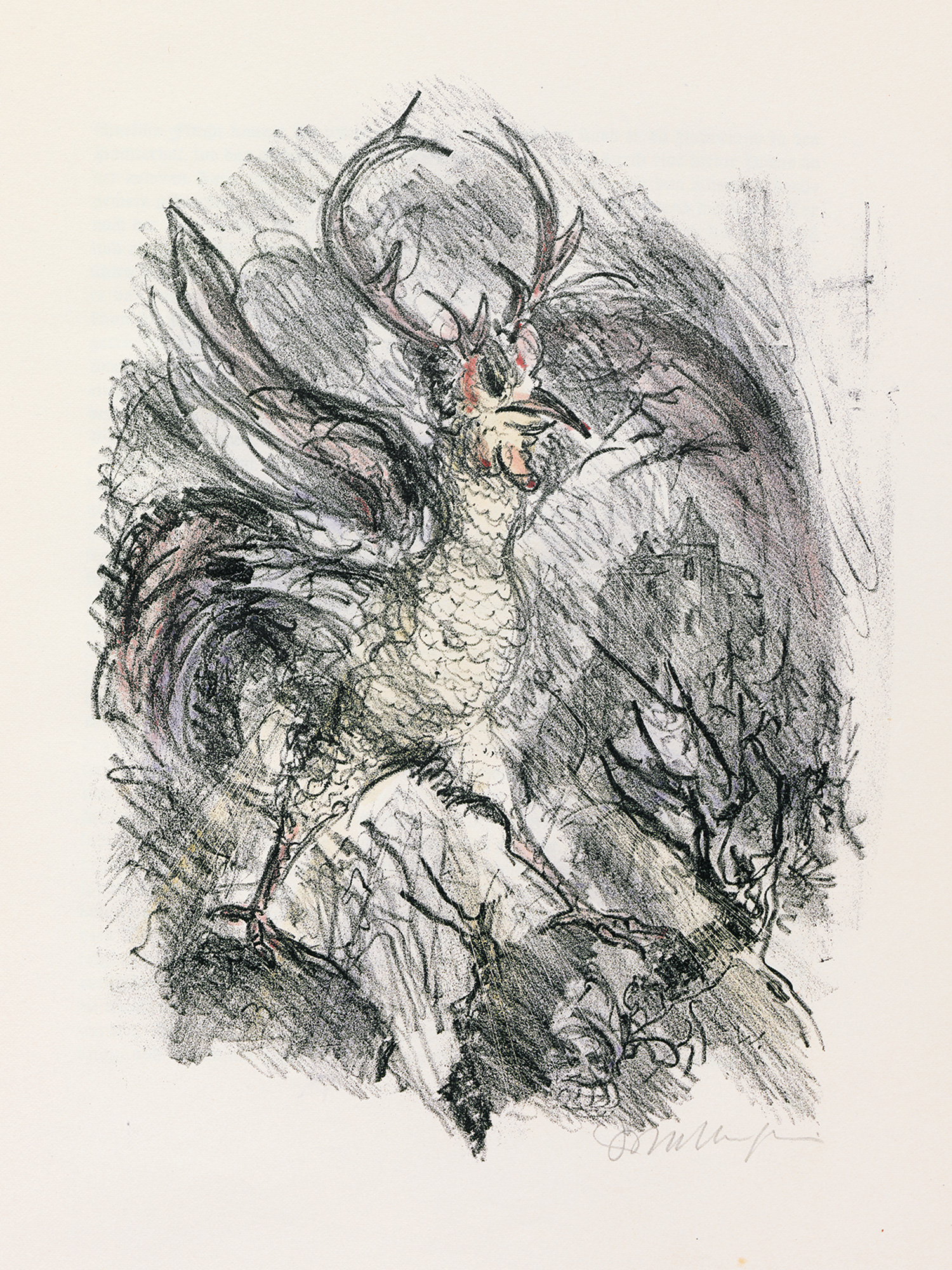 Erster Chrysos-Druck. Nicht bei Rodenberg. – Eines von 200 nummerierten Exemplaren (Gesamtauflage). Druckvermerk und Lithographien vom Künstler signiert, die letzte Litho in diesem Exemplar allerdings ohne Signatur. Druck in der Manuskript-Gotisch bei Otto von Holten. Wellenstein war ein Schüler Orliks, als "Geistesverwandter Kubins liebt er spukhafte, dämonische Szenen unter Bevorzugung grauer Farbtöne" (Vollmer V, 107). – Innengelenke leicht angeplatzt, sonst nahezu tadellos. Innenspiegel mit modernem gestochenem Exlibris.